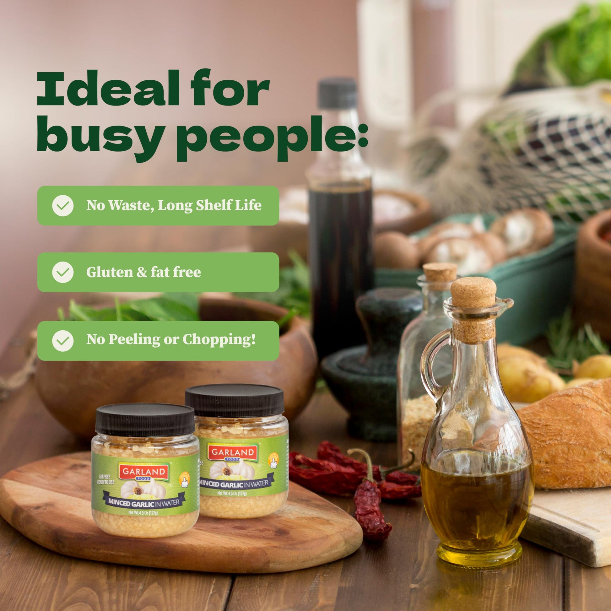 Garland Food Minced Garlic in Water 4.5 oz - Made in the USA - Minced Garlic in Jar for Fresh Flavor, Time-Saving Prep, and Vers