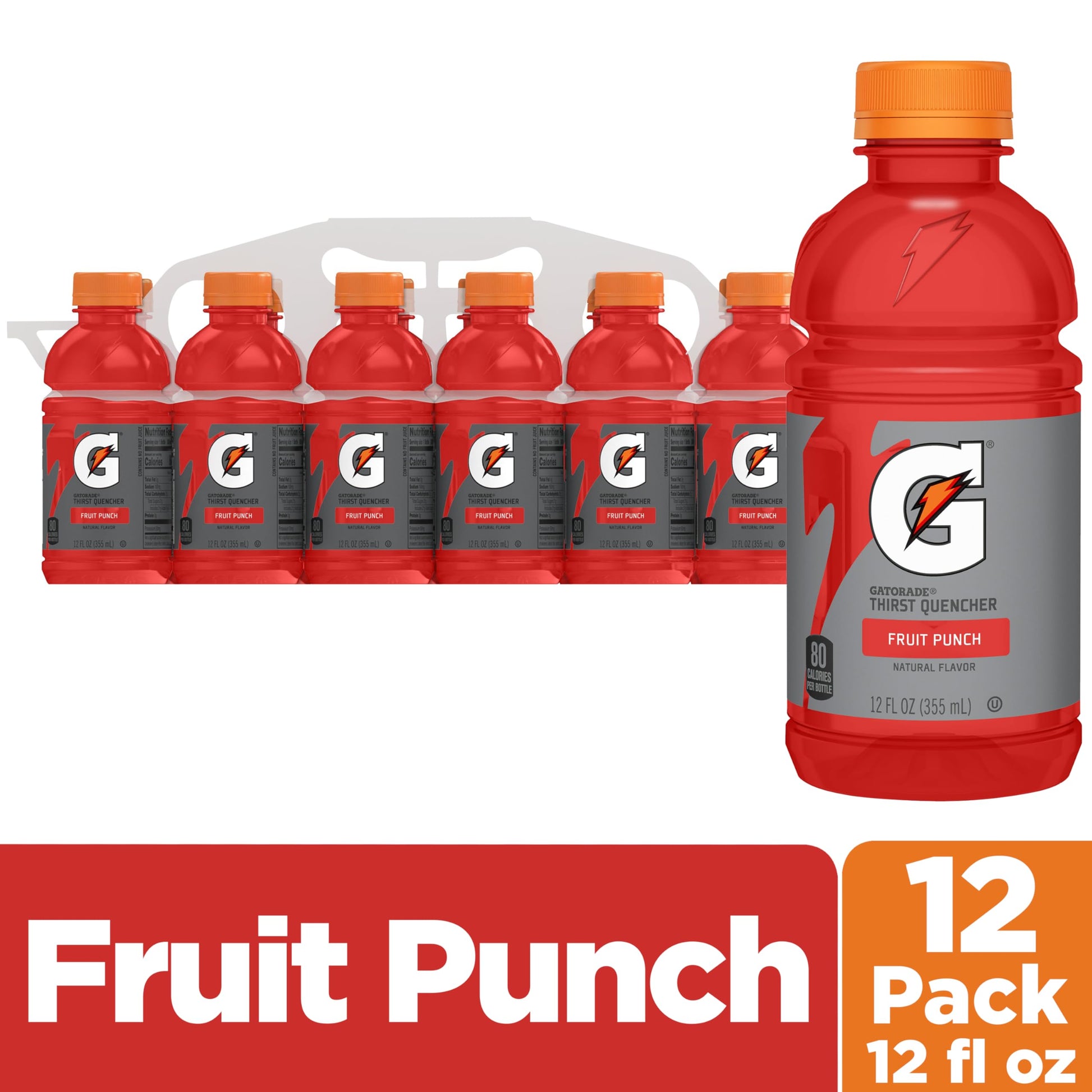 Q: How much liquid is in each bottle of Gatorade Fruit Punch?A: Each bottle of Gatorade Fruit Punch contains 12 Fl Oz (355 mL) of sports drink, making it a convenient size for hydration on-the-go.