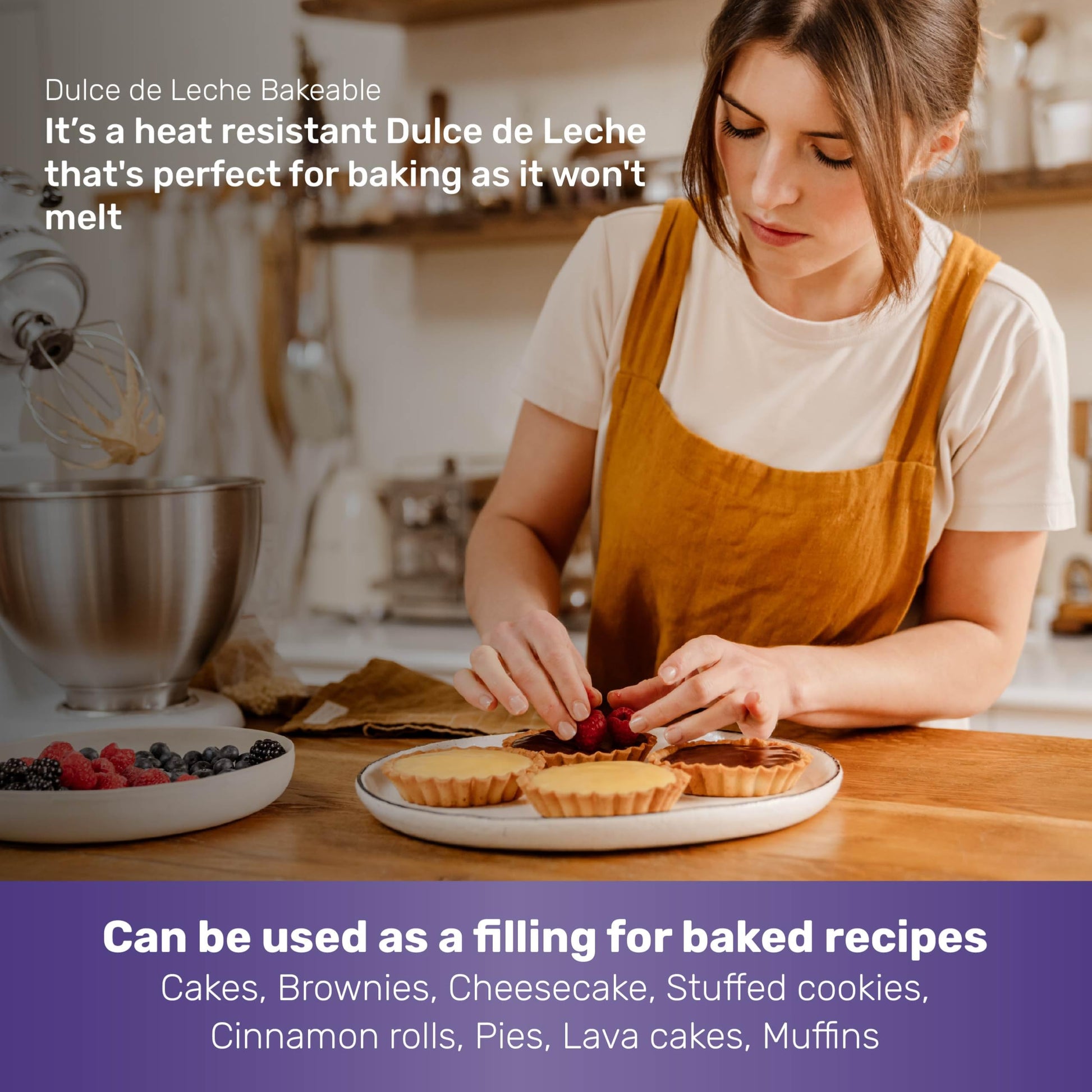 - Q: Is N'Dulce Dulce de Leche heat resistant? A: Yes, N'Dulce Dulce de Leche is heat resistant and specially formulated for baking, allowing it to hold its shape without dripping during the baking process.