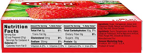 Q: How do I prepare Gefen Strawberry Jello?A: Preparing Gefen Strawberry Jello is simple! Just follow the easy-to-follow instructions on the package. Spoon the jello into a container, add water as directed, and chill until set.