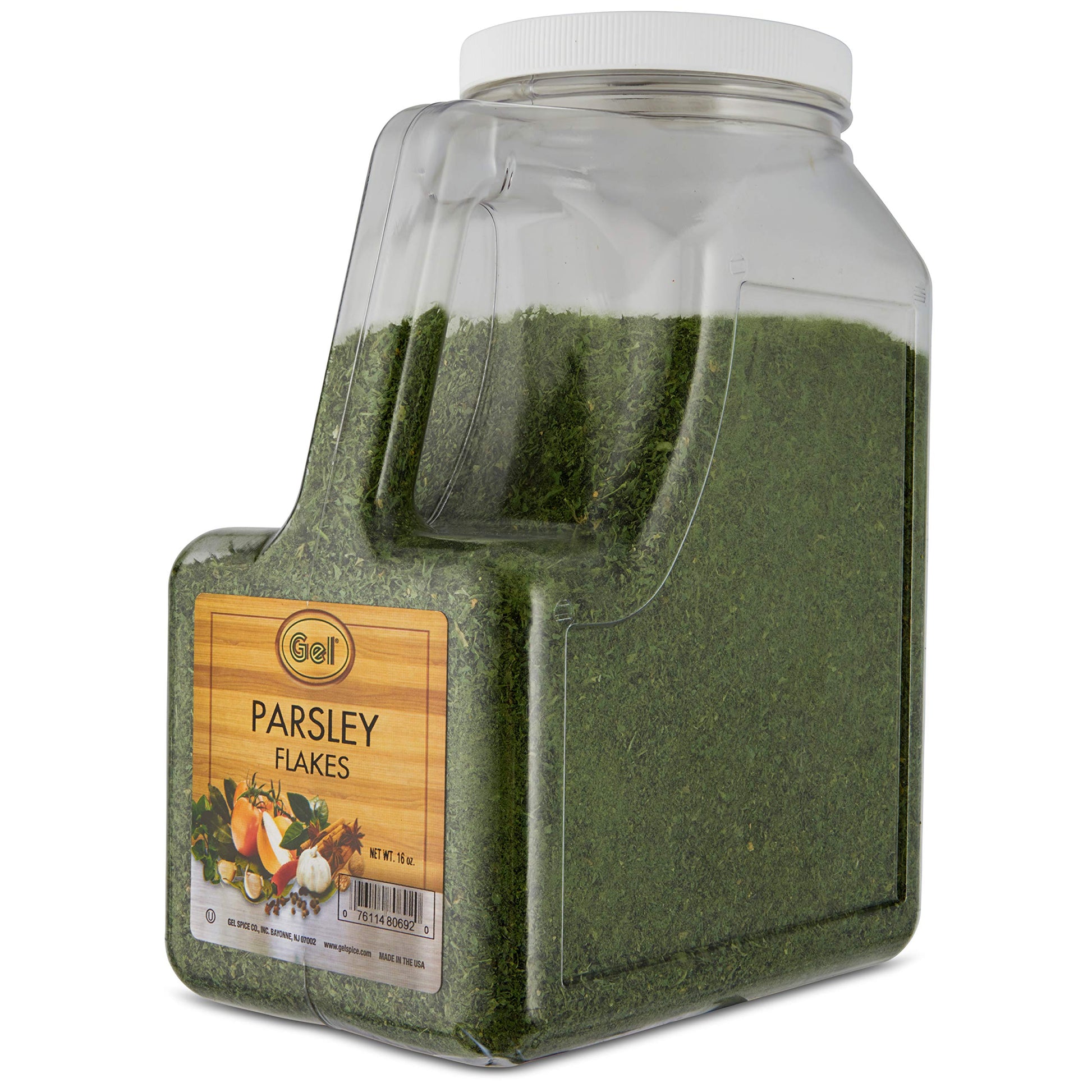 Q: What is the size of the Gel Parsley Flakes jar?A: The Gel Parsley Flakes come in a large commercial size jar of 16oz (1lb), making it perfect for both home cooks and professional chefs who need a substantial amount of parsley.