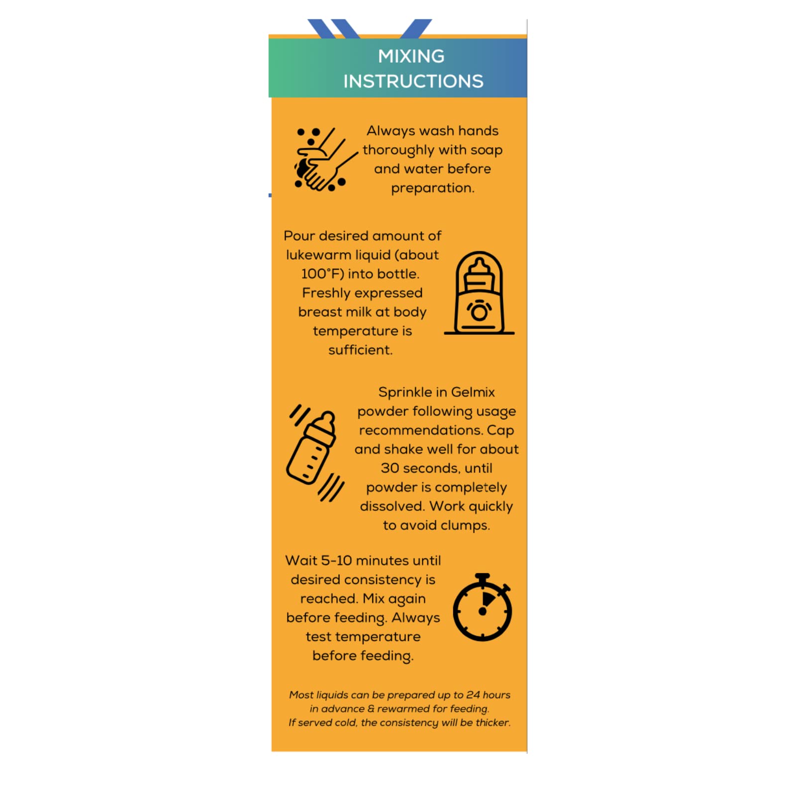 When Thickening Is Recommended For Spit-Ups (Reflux) Or Swallowing Difficulties (Dysphagia), Gelmix Is The #1 Pediatric Choice For Breast Milk And Formula. Gelmix Thickens Warm Breast Milk Or Formula Without Altering The Taste Or Smell. It Mixes Into A Smooth Thickened Consistency For Bottle Feeding. Made By A Pediatric Gastroenterologist, Gelmix Is Usda Organic And Kosher Organic Certified.