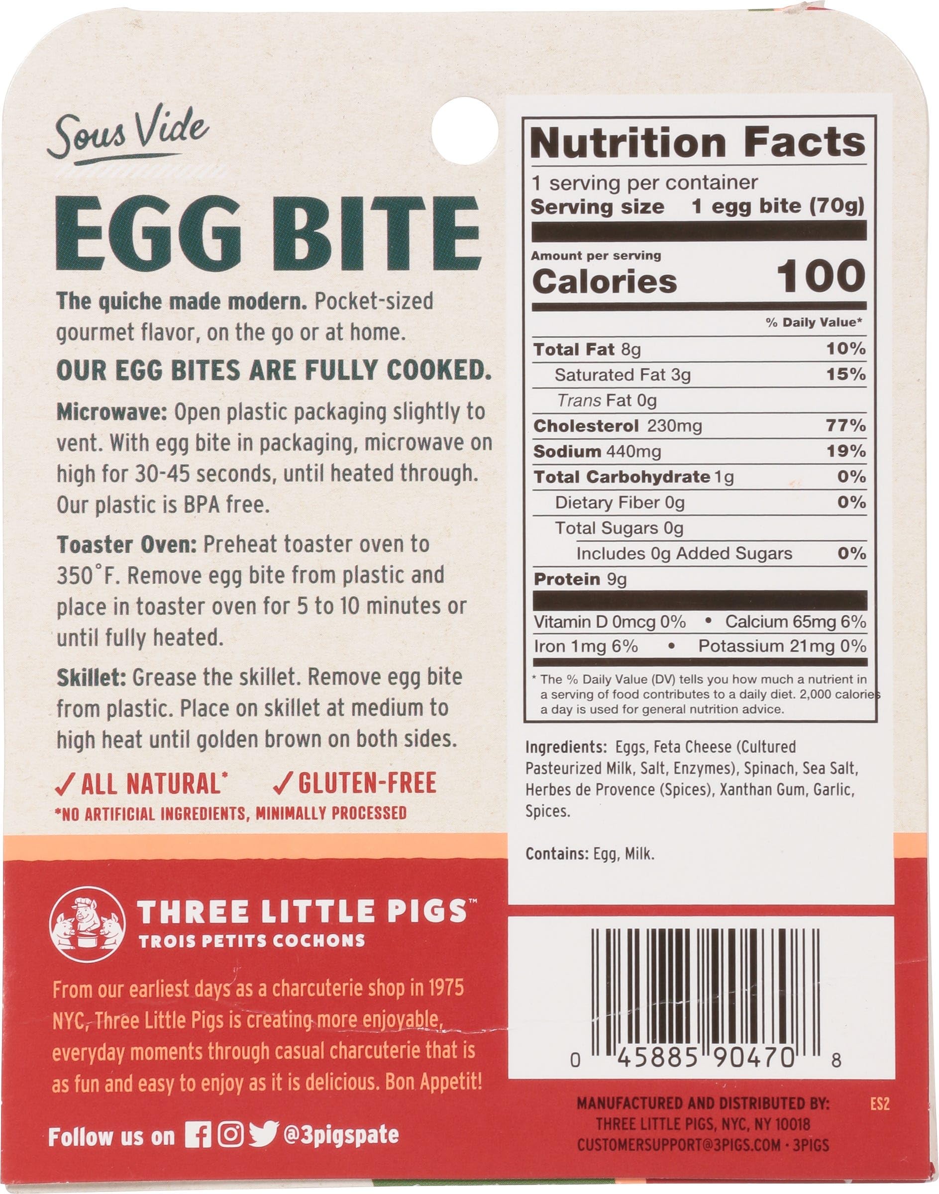 Generic Three Little Pigs Sous Vide Egg Bite Spinach & Feta, 2.5OZ, 12 Pack