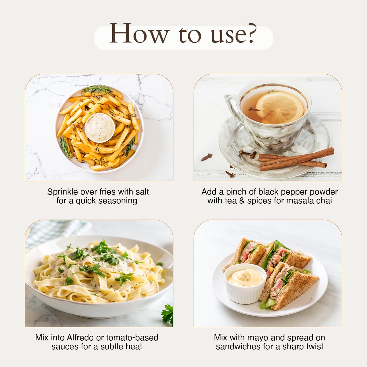 Key Features:- 100% USDA Certified Organic Black Pepper Powder for a pure and high-quality seasoning experience.