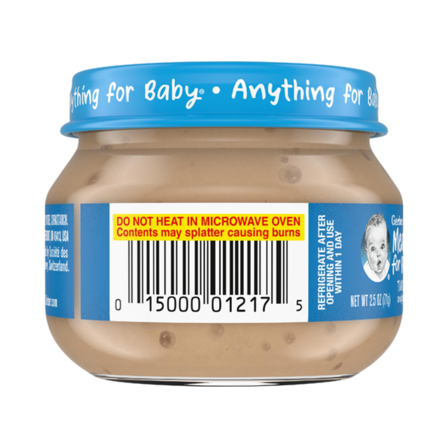 - Q: How much protein is in each jar of Gerber 2nd Foods Turkey & Turkey Gravy? A: Each 2.5-ounce jar of Gerber 2nd Foods Turkey & Turkey Gravy contains 7 grams of protein, which is essential for your baby's growth and development.