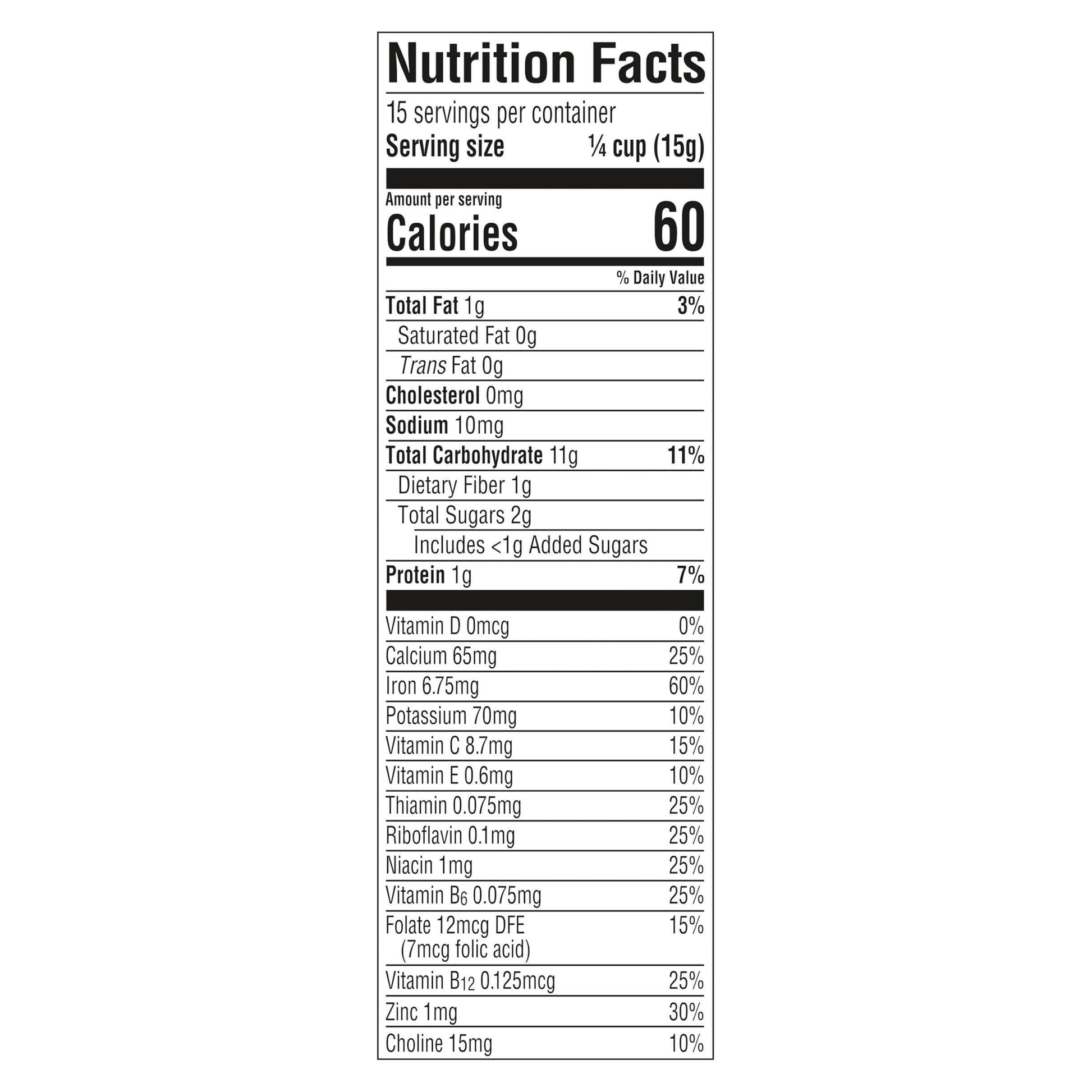 Q: What nutritional benefits does Gerber Organic Baby Oatmeal Cereal provide?A: This baby cereal contains 12g of whole grains and is rich in essential nutrients, providing 60% of the daily value of iron, 30% of zinc, and 25% of vitamin B12, all crucial for your baby's growth and development.
