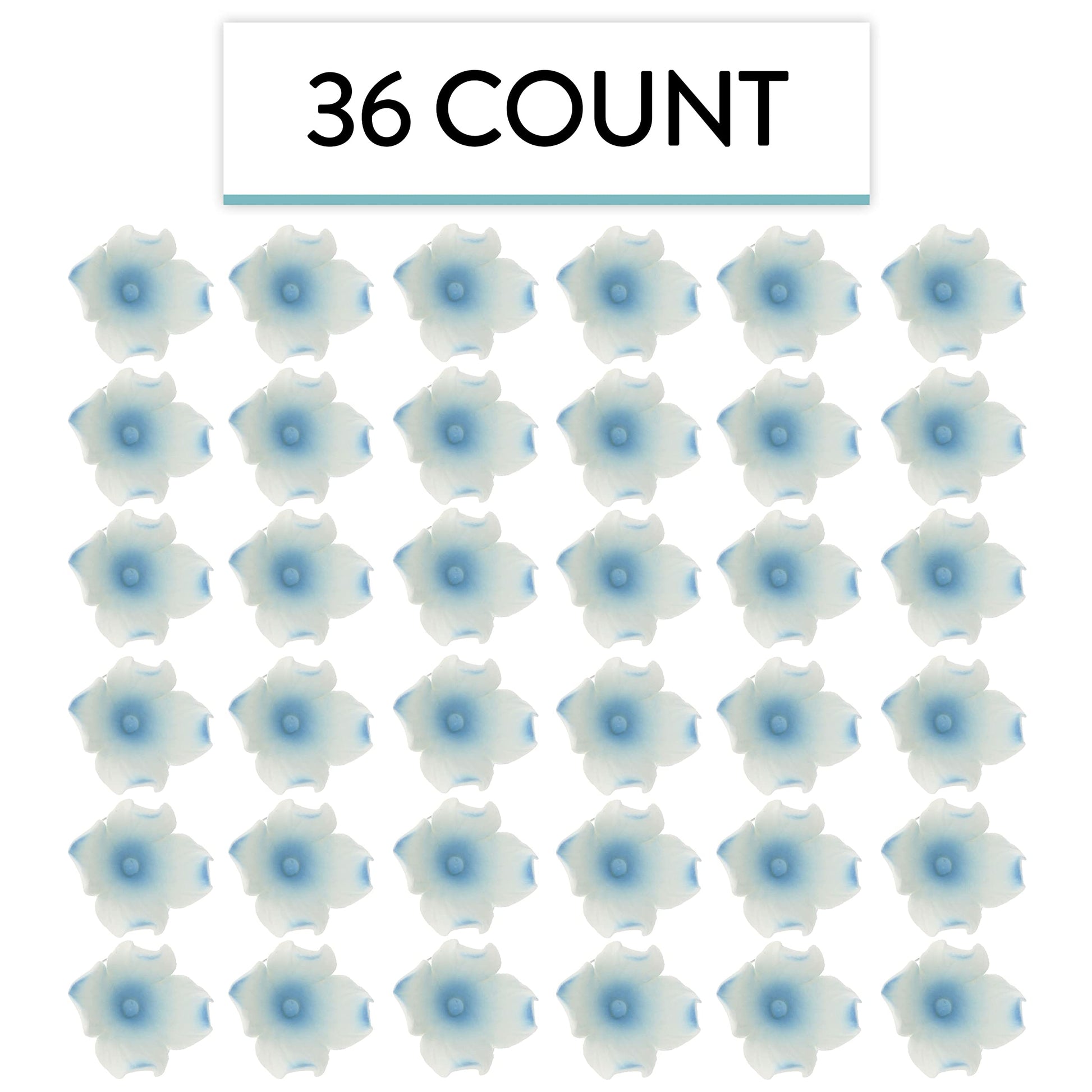 Hydrangea Blossom, White with Blue, Wired -36 Count by Chef Alan Tetreault.These realistic individual hydrangea blossoms can adorn any cake or cake topper. Handmade from gumpaste, these flowers allow beginners or professional decorators alike to achieve wonderful results. Each flower is wired to easily allow it to be made into a spray or bouquet. They are white with blue and can be further colored by dusts or air brushing. Flower measures approximately 1-1/8 inches. Box of 36. Flowers are shown on a standard cupcake.For decorative purposes only as some flowers may contain non-edible floral wire, stamen or pearls.Gumpaste & Royal Icing flowers are brittle and easily damaged in shipping. While we do our best to pack them for you, some breakage is possible. Please order extra to insure you have enough. Size, shape and color of flowers may vary.