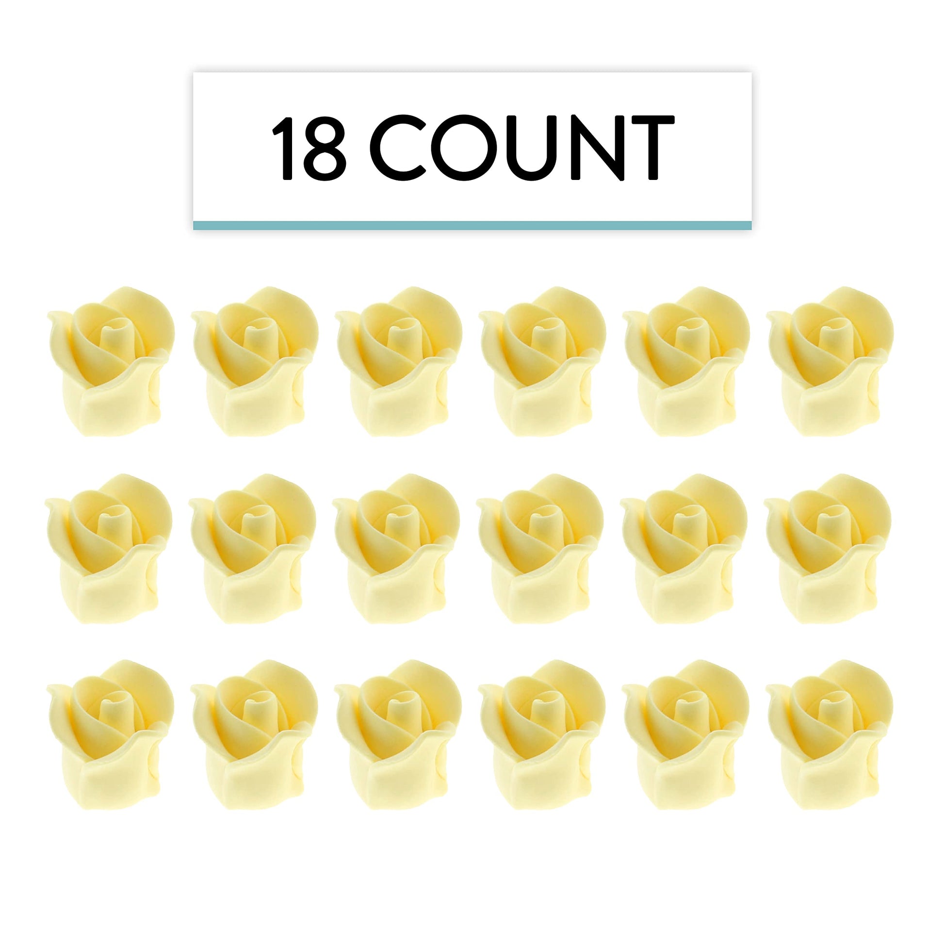 Global Sugar Art Rose Sugar Cake Flowers, Yellow, Unwired Very Small, 18 Count by Chef Alan Tetreault.This rose is a beautiful flower to decorate your cake or cupcake. Handmade from gumpaste, these flowers allow beginners or professional decorators alike to achieve wonderful results. These flowers are yellow, are unwired and have no calyx and may be further colored by dusts or air brushing.. The flower measures approximately 1/2 inch in diameter. Box of 18. Flower is shown on a standard cupcake.For decorative purposes only as some flowers may contain non-edible floral wire, stamen or pearls. Gum paste & Royal Icing flowers are brittle and easily damaged in shipping. While we do our best to pack them for you, some breakage is possible. Please order extra to insure you have enough.Size, shape and color of flowers may vary.