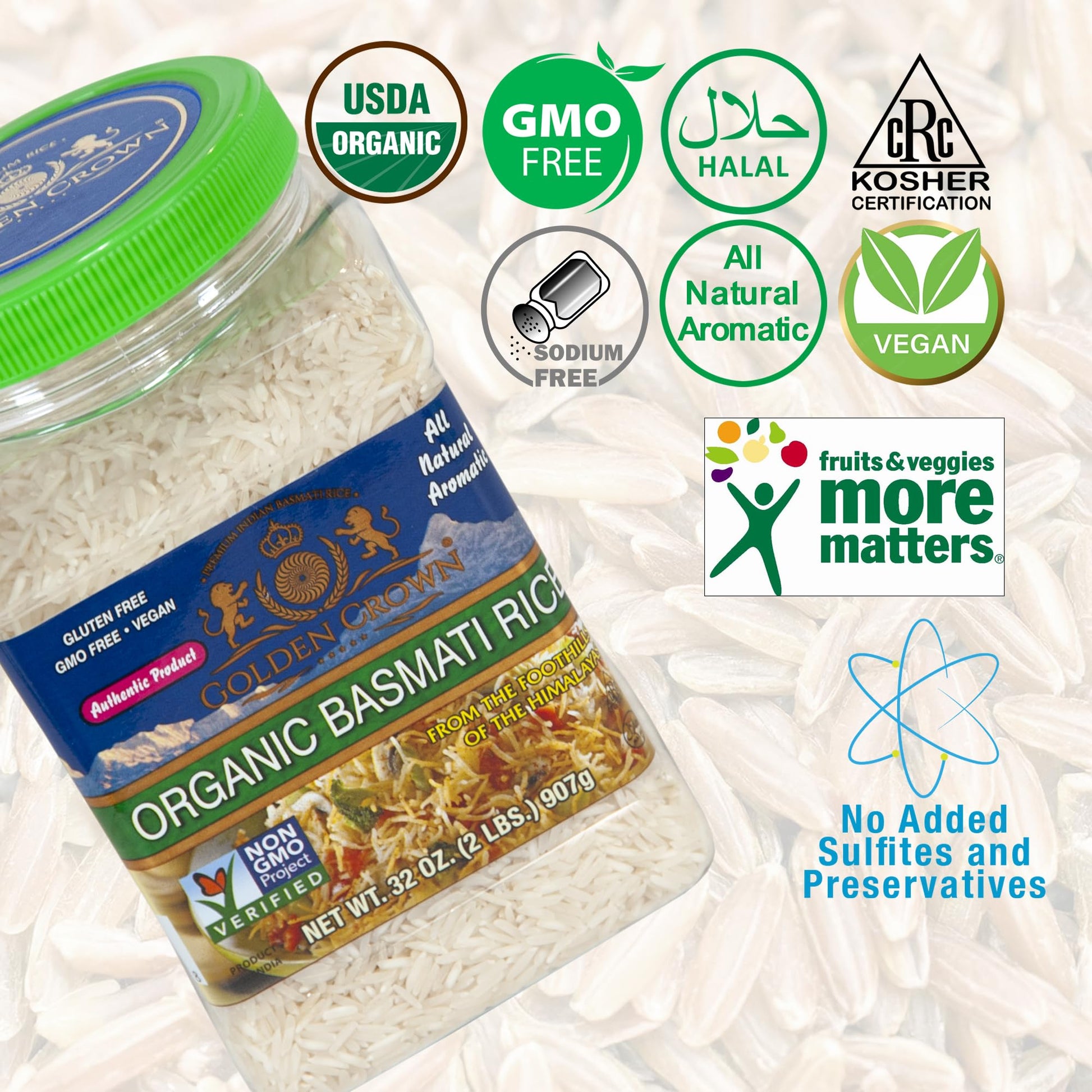 - Q: What makes Golden Crown Organic White Basmati Rice gluten-free? A: Golden Crown Organic White Basmati Rice is certified as gluten-free, ensuring it's safe for individuals with gluten sensitivities or celiac disease. The rice is cultivated without any gluten-containing grains, making it an ideal choice for gluten-free diets.