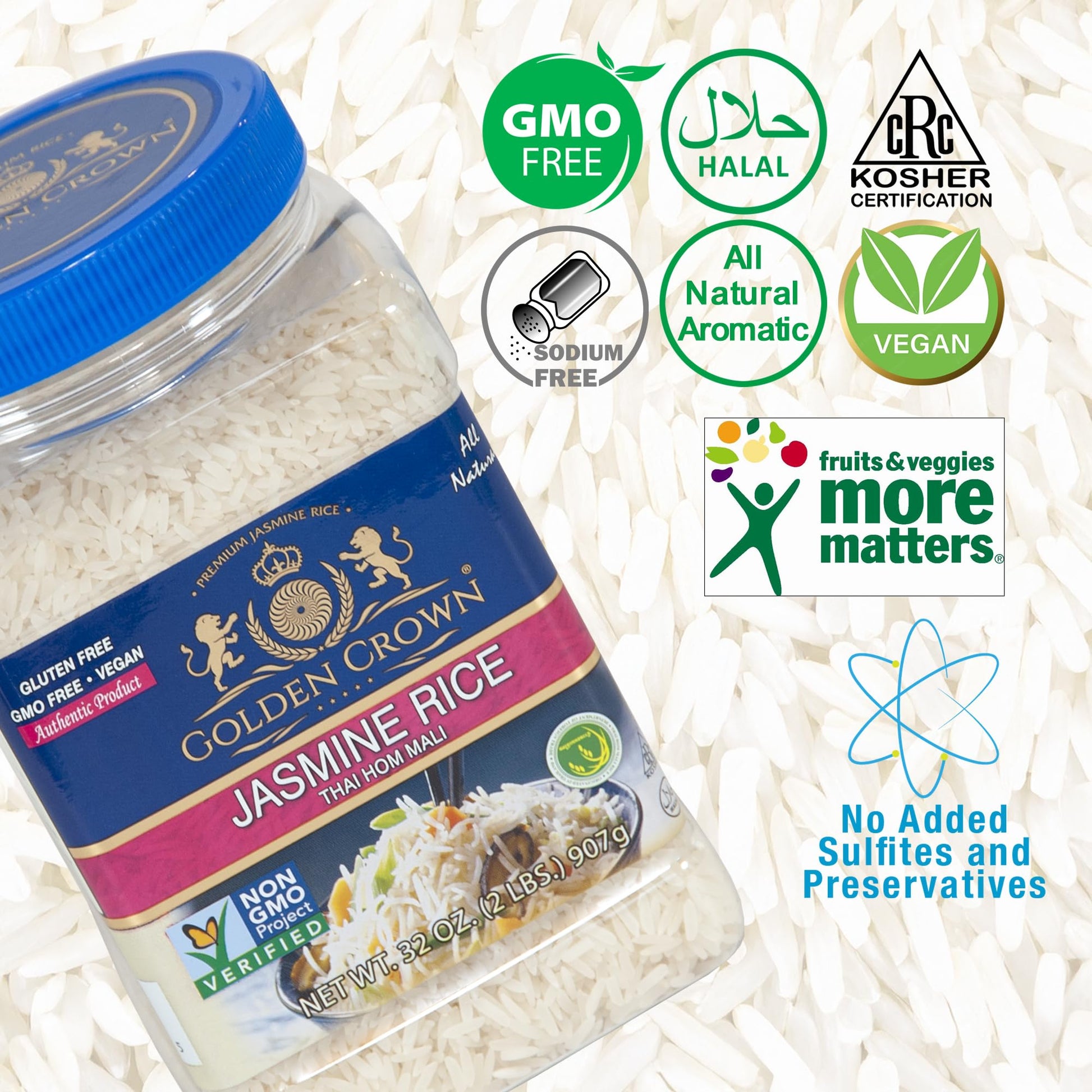 Q: Is this jasmine rice gluten-free?A: Yes, Golden Crown Premium White Jasmine Rice is gluten-free and Non-GMO Project Verified, making it a suitable choice for those with gluten sensitivities or dietary restrictions.