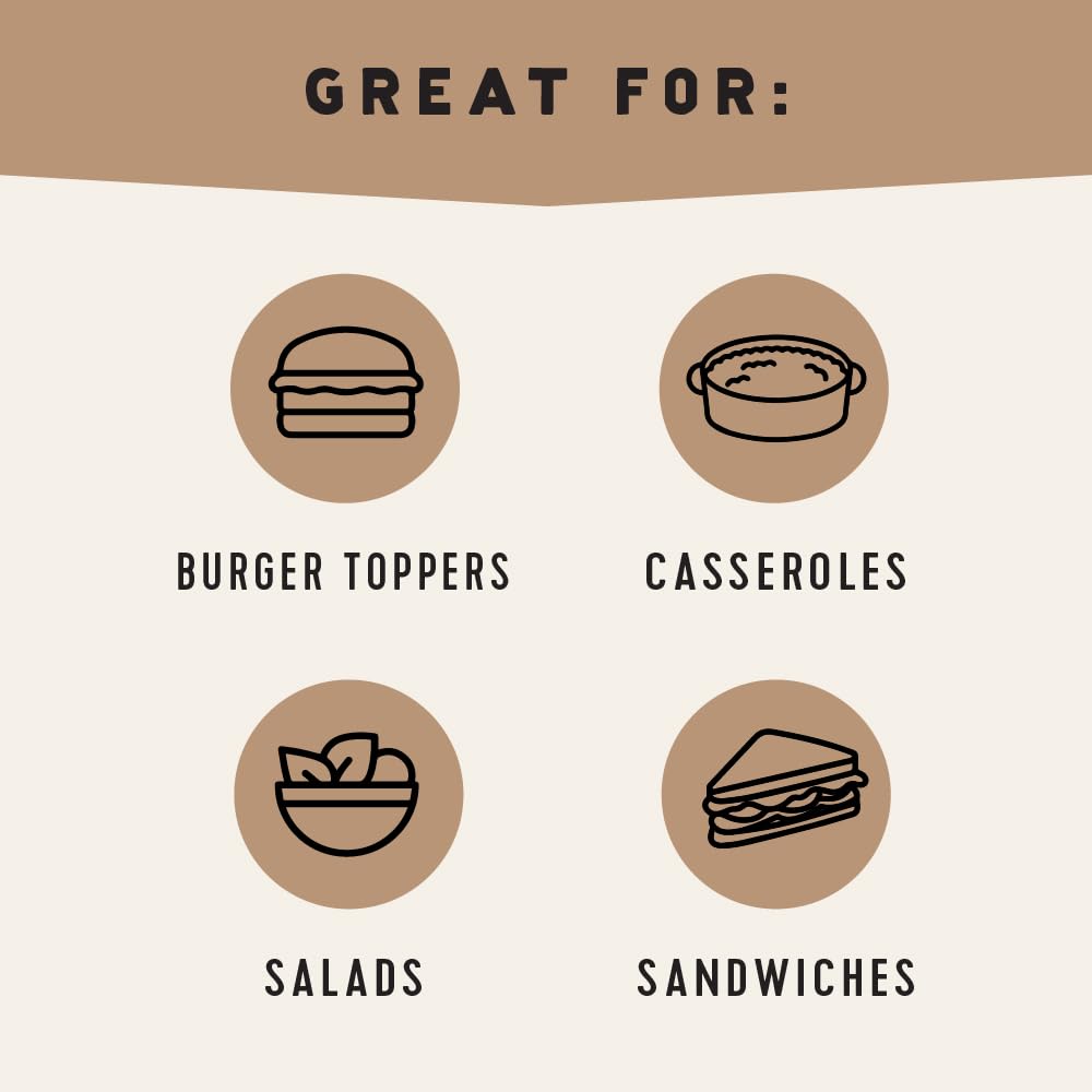 We select these onions from organic fields on small farms in the Netherlands. Picking only under peak conditions, we peel, wash, cut, and coat these beauties in a batter that delivers all the crispy flavor you want. Fried up in pure vegetable oil, you get a crunchy topping that adds flavor to sandwiches, salads, burgers, mashed potatoes, green bean casseroles and more.