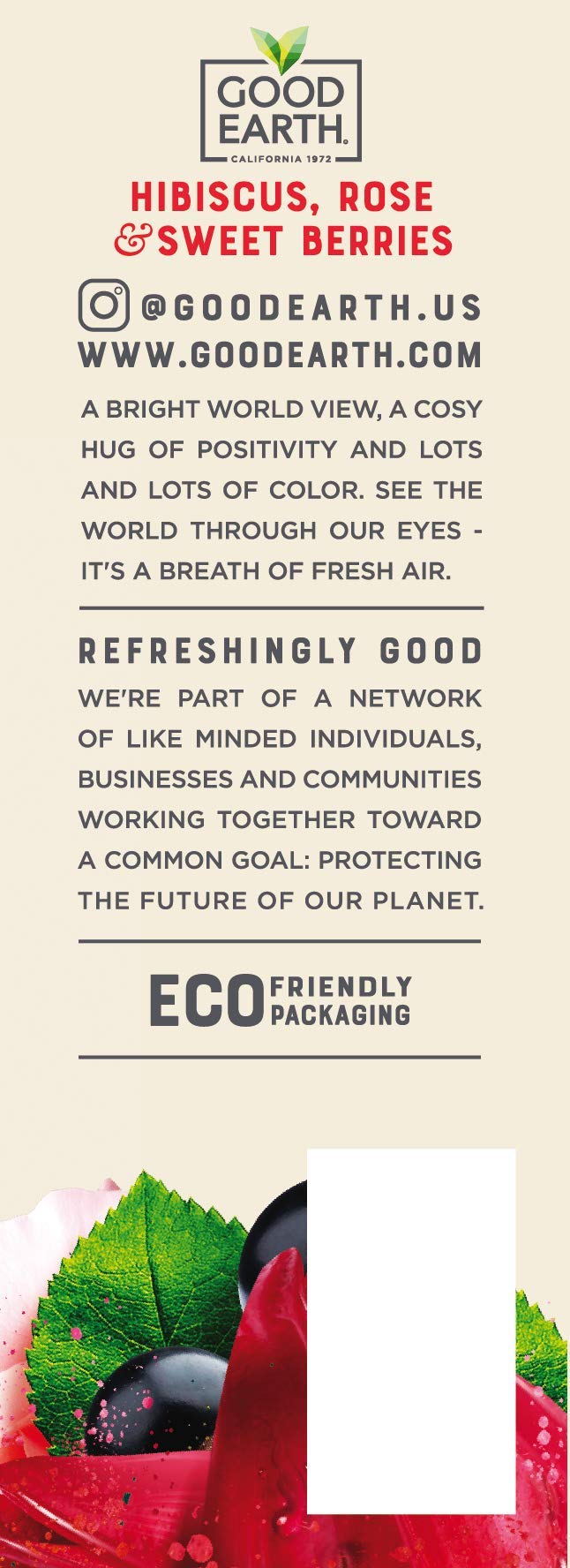 Q: Is the packaging of this tea environmentally friendly?A: Yes, the tea comes in a recyclable carton and is Rainforest Alliance Certified, reflecting Good Earth's commitment to sustainability and ethical sourcing.