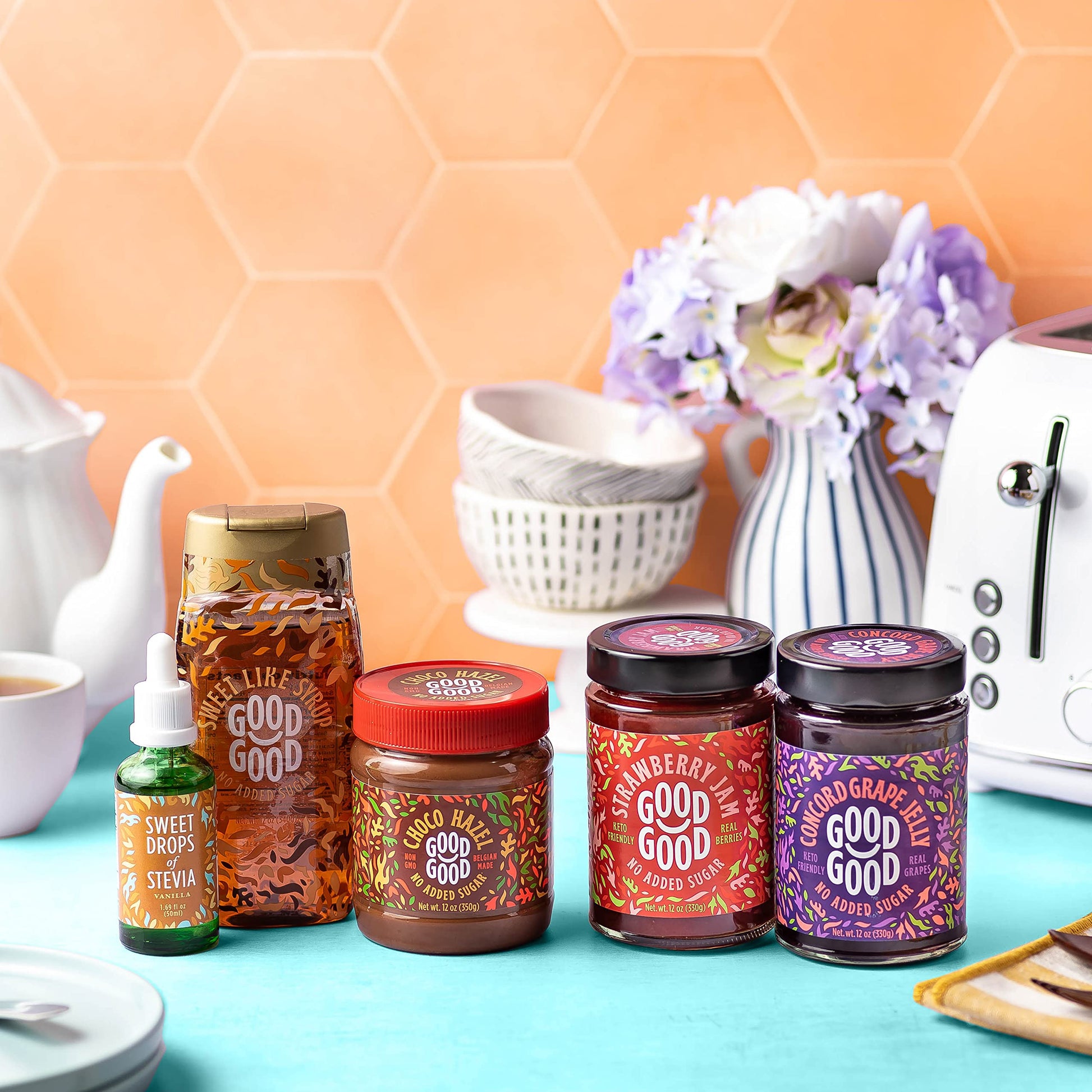 Q: How does Good Good jelly compare to traditional jams?A: Good Good jelly offers a healthier alternative to traditional jams by being low-calorie, low-carb, and free from added sugars, making it suitable for various dietary needs, including keto, vegan, and diabetic diets.