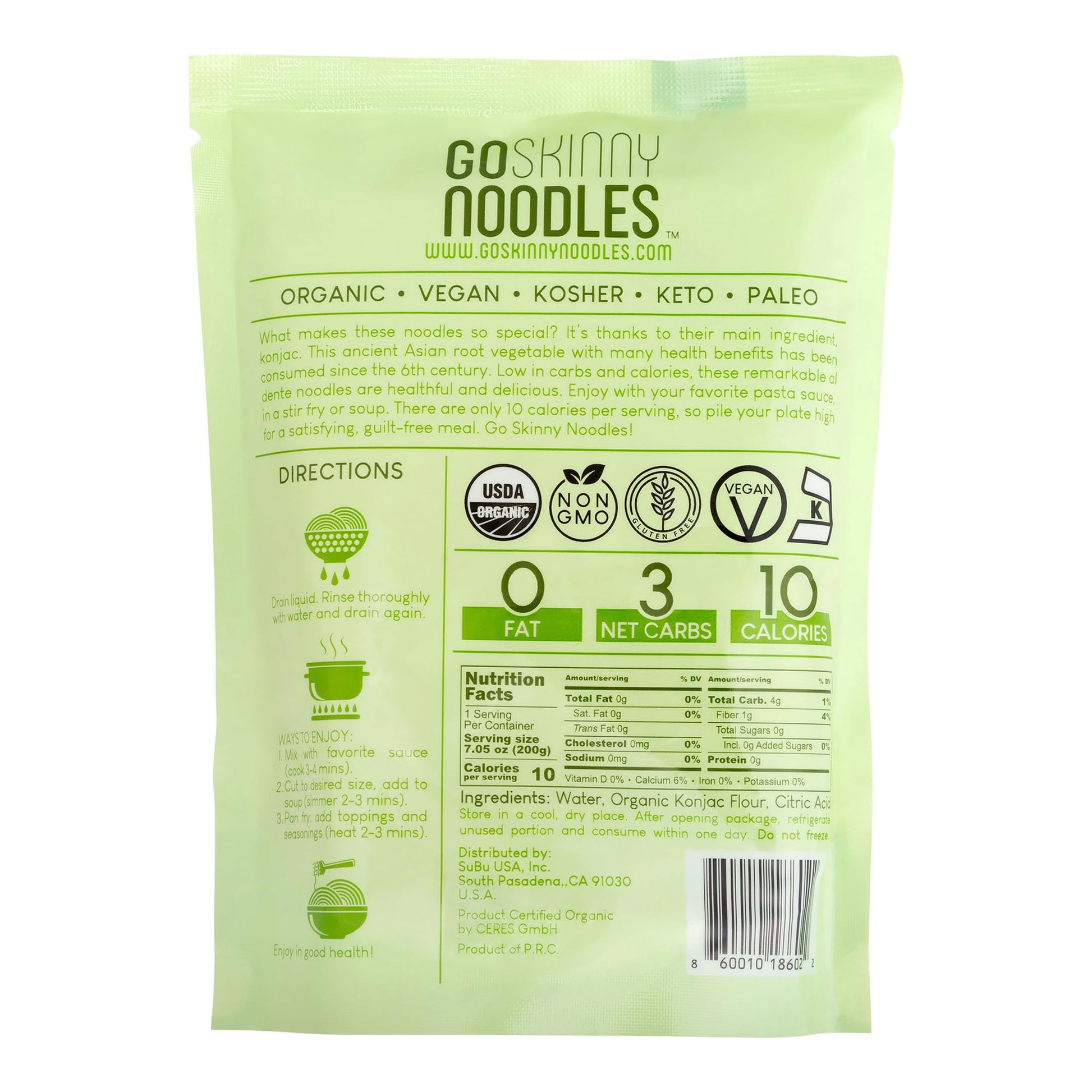 Goskinny Noodles Fettuccine Are A New And Improved Kind Of Shirataki Noodles: They Are Organic With No Smell And Less Liquid Than Other Brands. They Contain Only 10 Calories, 3G Net Carbs, 0 Fat, And 0 Guilt. They'Re Also Gluten-Free, Plant-Based, And Vegan. What Makes These Noodles So Special? It'S Their Main Ingredients: Konjac. This Asian Root Vegetable Has Been Eaten Since The 6Th Century. Enjoy With Your Favorite Pasta Sauce, In Stir Fry Or Soups. Now Available In 6, 12, And 24 Packs.