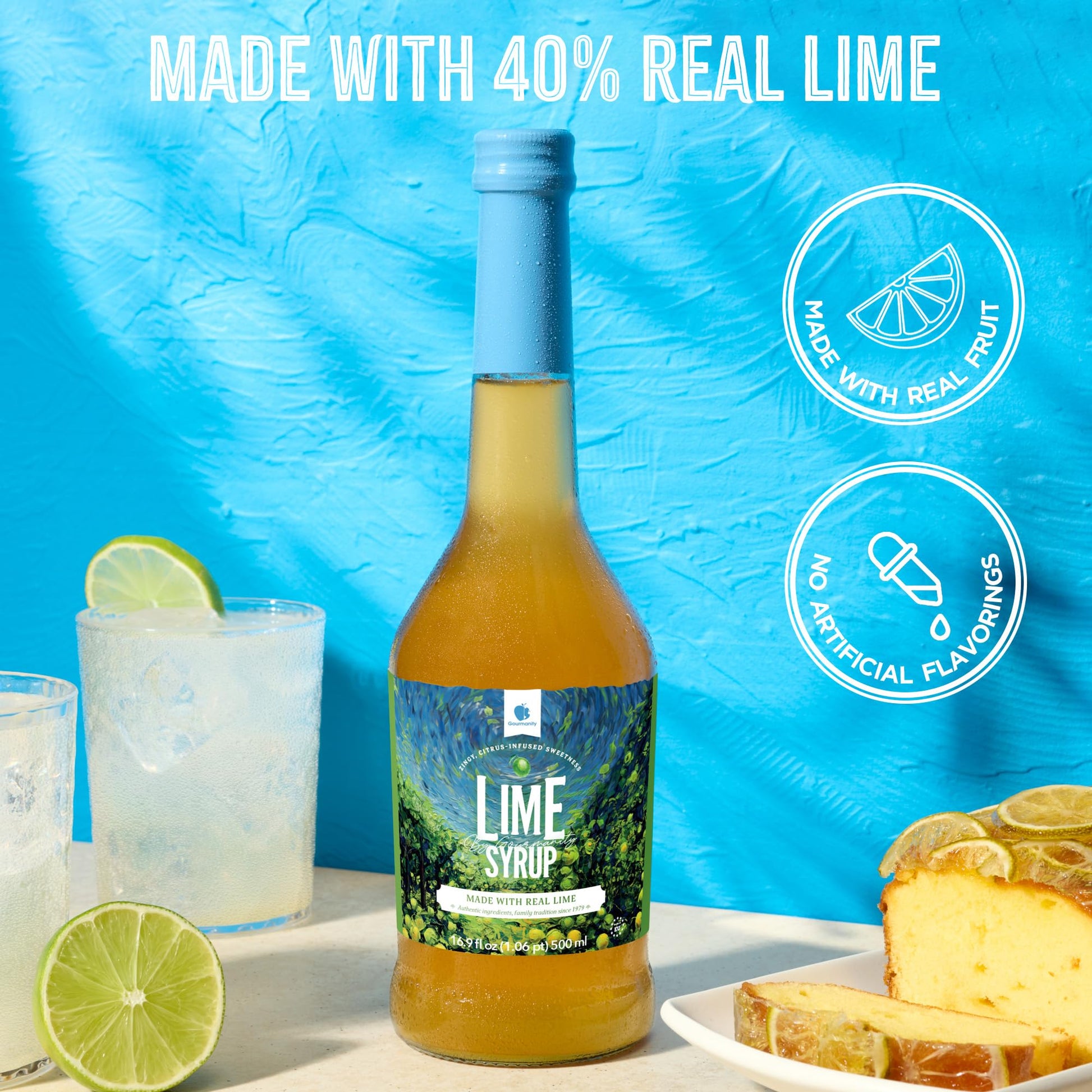 Gourmanity Lime Syrup, Made With Real Lime Juice, Zingy, Citrus-Infused Simple Syrup, Ideal For Flavoring Snow Cones, Italian Soda, Cocktails And Mocktails (16.9Fl Oz/500Ml Glass Bottle)