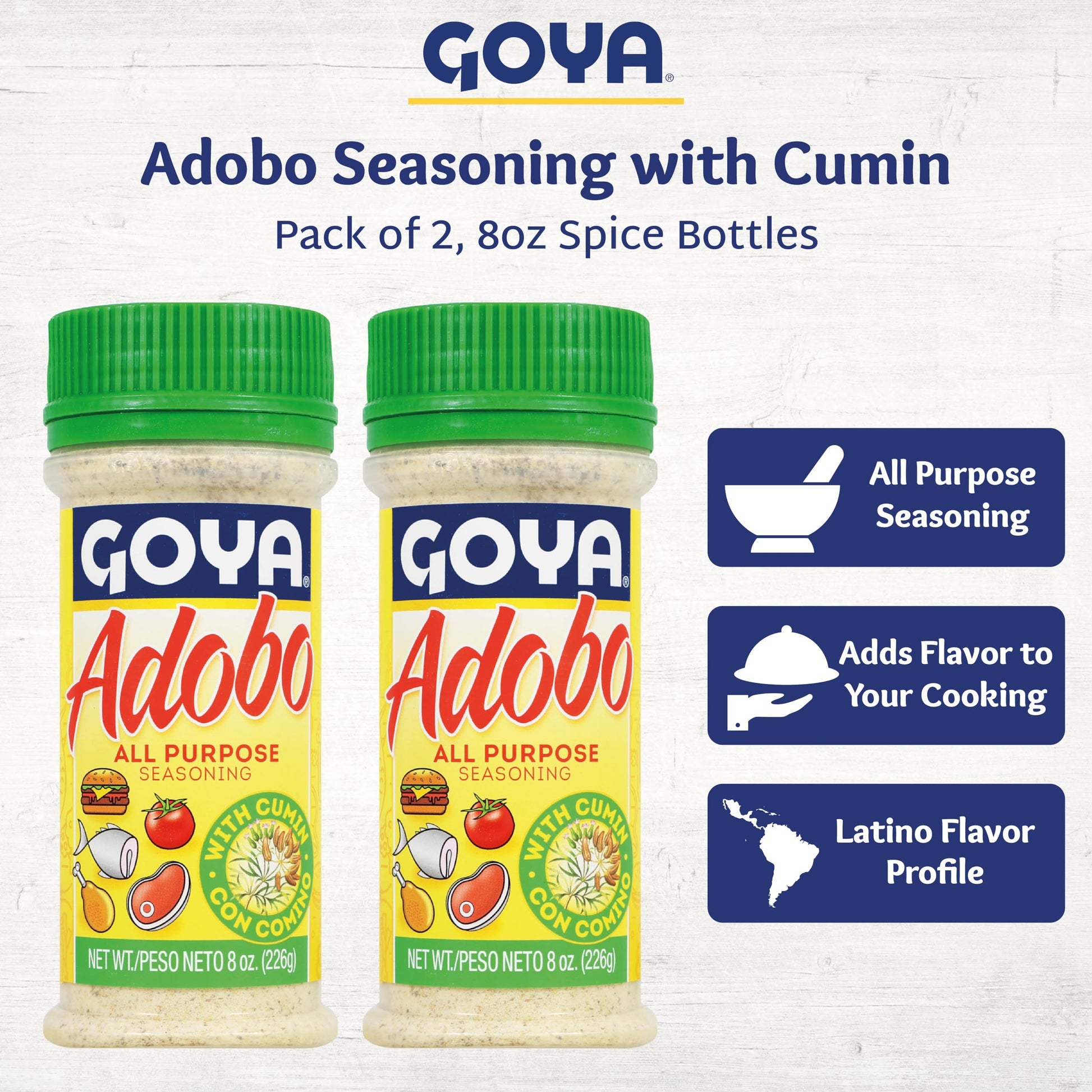 - Q: What is Goya Adobo All Purpose Seasoning with Cumin used for? A: Goya Adobo All Purpose Seasoning with Cumin is a versatile seasoning blend ideal for enhancing the flavors of beef, chicken, fish, seafood, and vegetables. It is used to add a rich, savory taste to a variety of dishes.