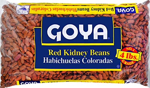 Goya Foods Red Kidney Beans, Dry, 4 Pound (Pack of 6) | These delicious red kidney beans have a robust flavor and smooth texture. Use them to prepare delicious chili, soups, salads, and more plant-based dishes. Nutritious, high quality Goya dry beans are high in protein and fiber, and contain no saturated fat. They're gluten free, fat free, cholesterol free, trans-fat free and kosher. They are a good source of fiber, iron, potassium, and protein. Simmer until tender for delicious, home cooked soups, stews, main dishes, and Latin such as rice and beans.