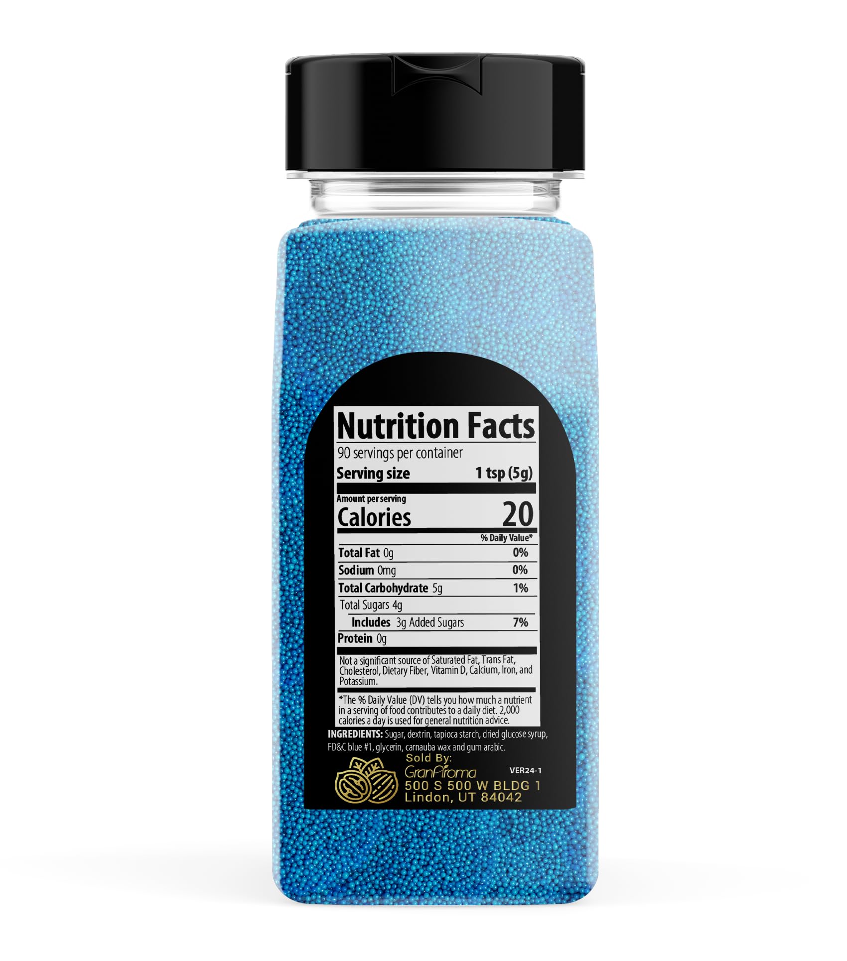 Q: What are GranAroma Blue Nonpareils used for?A: GranAroma Blue Nonpareils are perfect for decorating a variety of desserts, including cookies, cakes, and cupcakes. They add a festive flair to celebrations such as birthdays, weddings, and holidays.