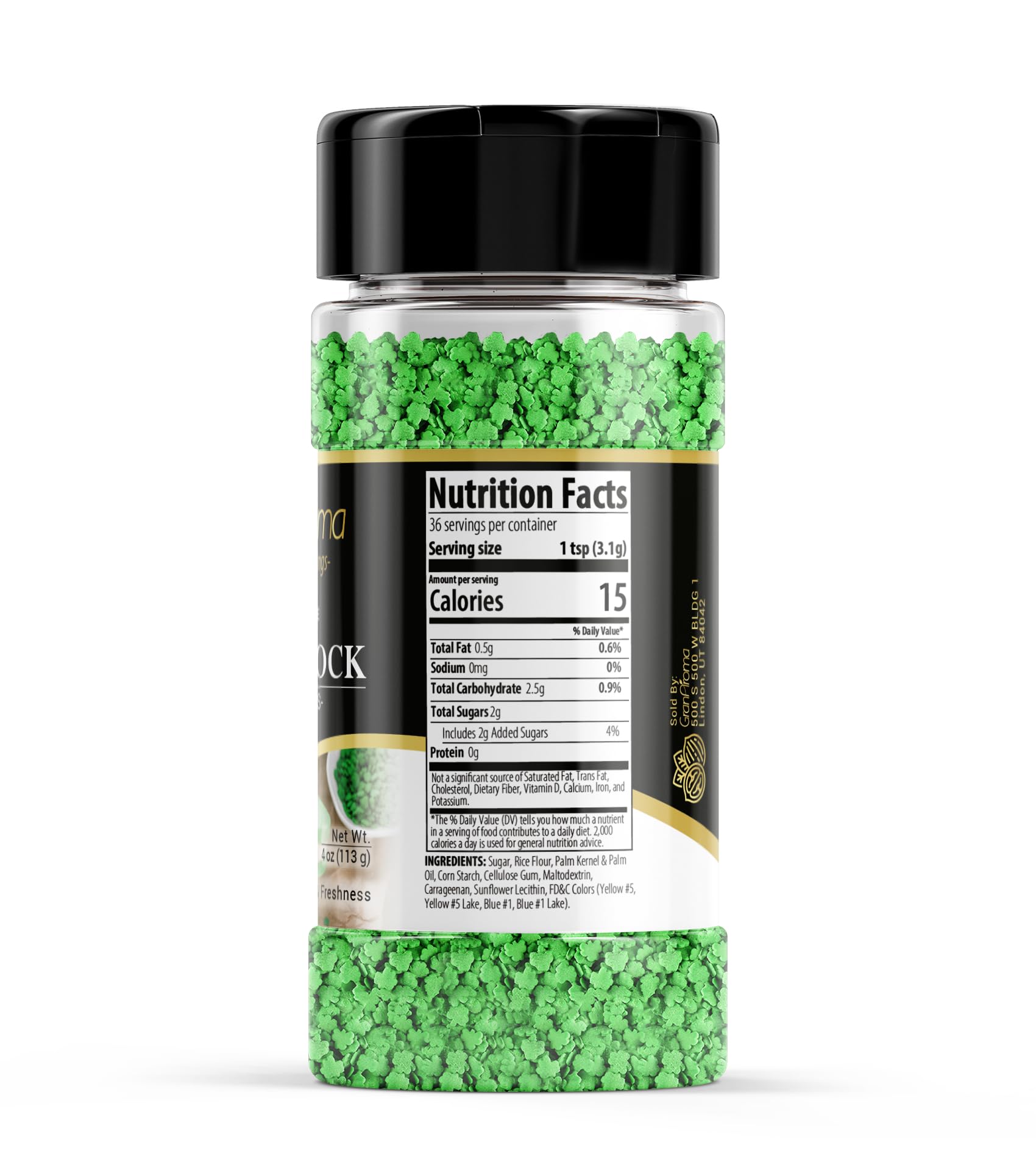 Q: What is the size of the package for Shamrock Sprinkles?A: The Shamrock Sprinkles come in a 4-ounce package, providing plenty of sprinkles for your baking and decorating needs.