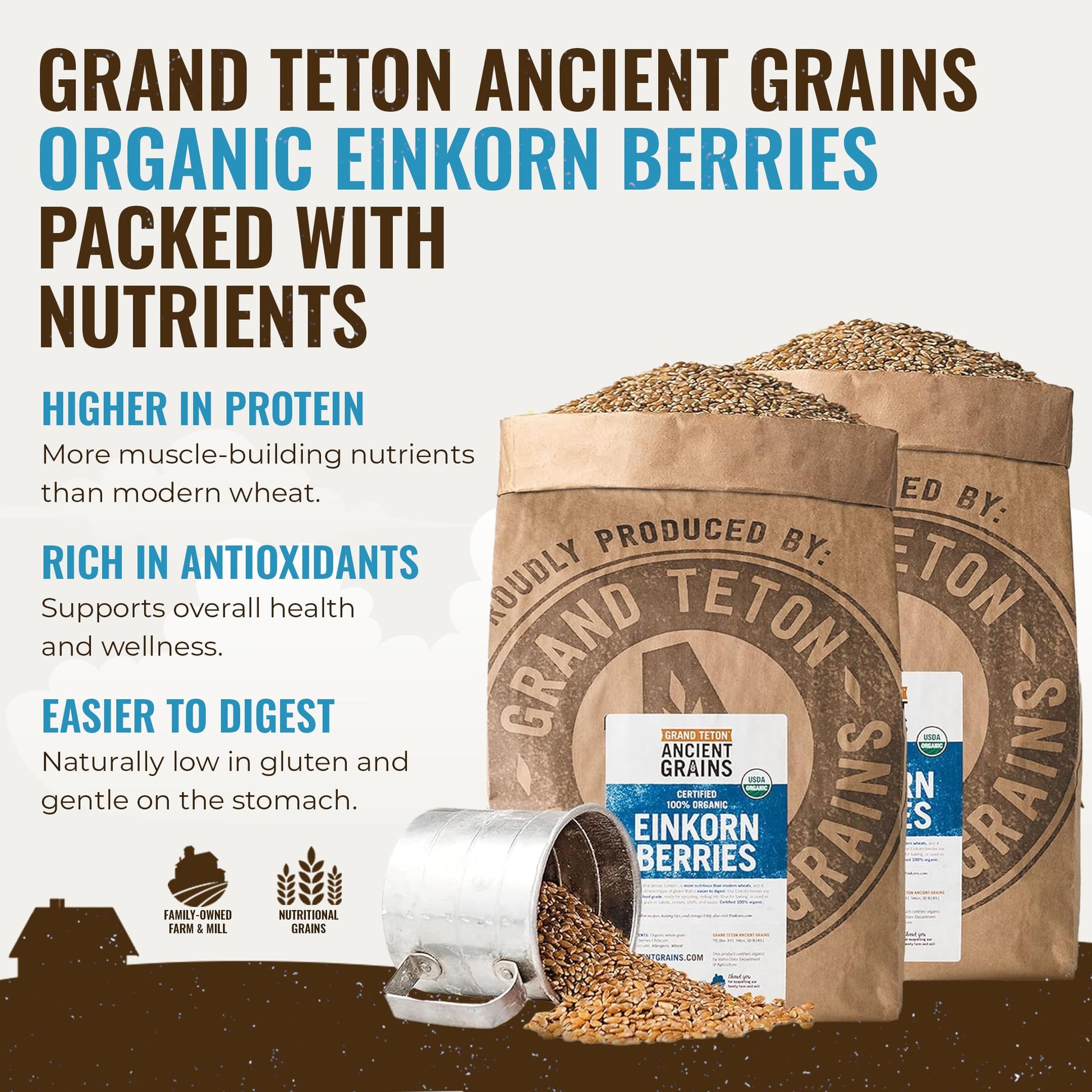 - Q: Are Grand Teton Einkorn Berries organic? A: Yes, Grand Teton Einkorn Berries are 100% organic, grown naturally on a family farm in Southeast Idaho, ensuring the highest quality and nutrient density.