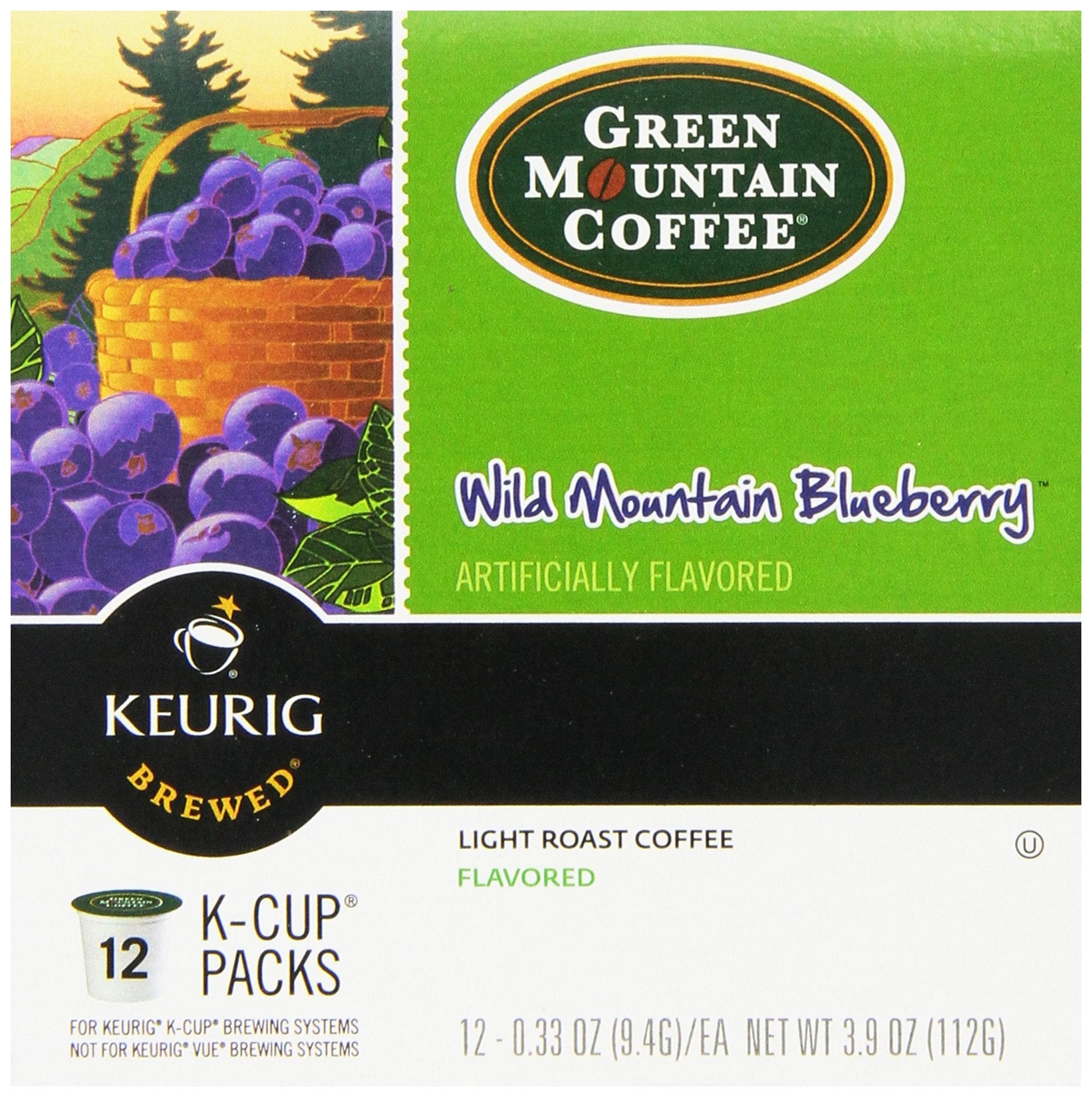 Q: What is the flavor profile of Green Mountain Coffee K-Cup, Wild Mountain Blueberry?A: The Green Mountain Coffee K-Cup, Wild Mountain Blueberry offers a light roast with the fruity sweetness and distinctive flavor of wild blueberries, reminiscent of freshly baked pie.