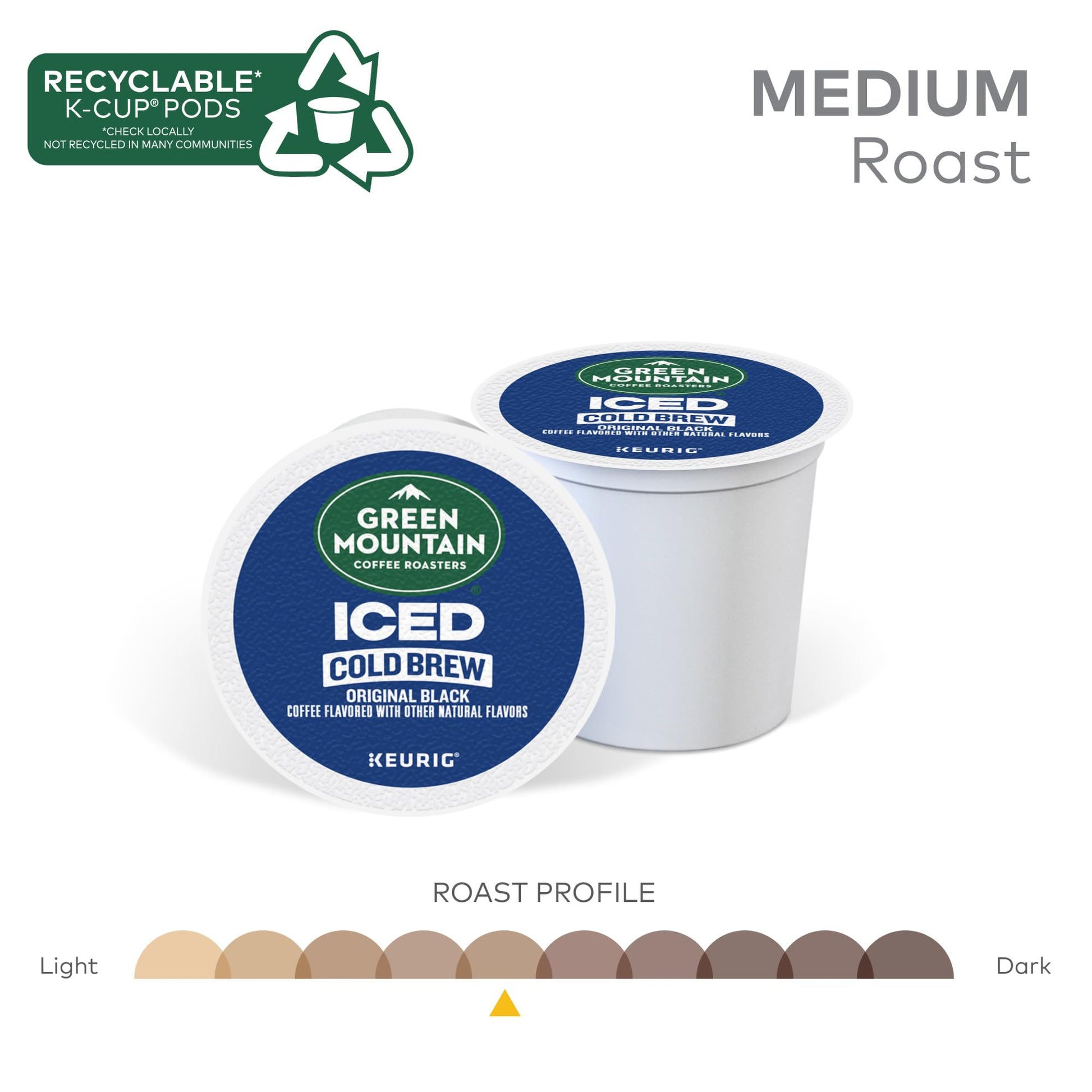 - Q: What makes Green Mountain Coffee Roasters Original Black Iced Cold Brew coffee unique? A: Green Mountain Coffee Roasters Original Black Iced Cold Brew coffee is specially crafted with 100% Arabica coffee beans that are steeped for hours to capture their peak flavor. This unique process results in a rich, smooth taste with distinctive chocolate notes, making it ideal for enjoying over ice.