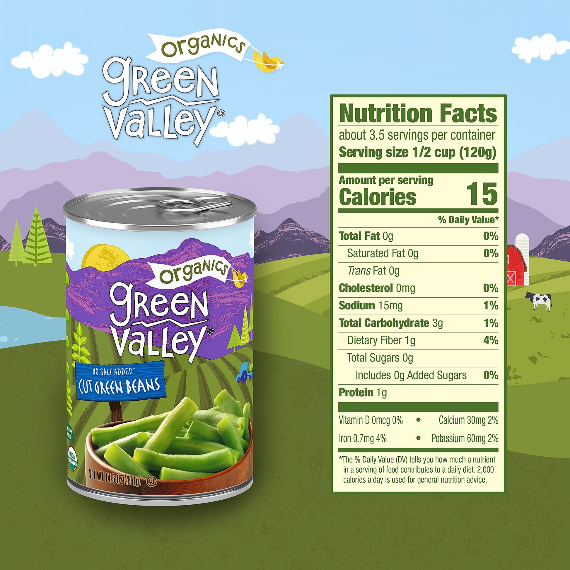 DELICIOUS TASTE: Green Valley Organic Cut Green Bean cultivars are selected for exceptional taste and crisp-tender texture. Green Valley Organic Cut Green Beans start as fresh plump firm pods and then are cut into bite-sized lengths for a deliciously mild, subtly sweet flavor and tender-crisp texture. Green Valley Organic Cut Green Beans are seasonally grown and harvested at the peak of ripeness and then prepared within hours just miles from where they are grown to seal in Farm Fresh Organic Goodness for delicious flavor and tenderness. Certified Organic. We put our finest Organic Cut Green Beans in every can - check out the ingredient statement: just "organic green beans" and "water." Yep that is it. Green Valley Organic Cut Green Beans are Low in Fat, have No Added Sugar, and No Salt Added (though because sodium is naturally present in green beans they are not "sodium free"). FARM-TO-TABLE | GROWN & MADE IN THE USA: Green Valley Organic Cut Green Beans are cultivated in the U.S. heartland by multi-generational, U.S. farmers on family-owned farms located in the fertile regions primarily of Iowa, Illinois, Minnesota, Upstate New York or Wisconsin. These are prime growing regions for Green Beans with fertile soil and an ideal combination of sun and rain fall. LIMITED EDITION - GET YOUR GREEN VALLEY ORGANICS CUT GREEN BEANS WHILE SUPPLIES LAST! Green Valley Organic Cut Green Beans are seasonally grown and harvested at the peak of ripeness and then prepared within hours just miles from where it is grown so you can Enjoy Food at Its Very Best. "Seasonally grown" means that every year, typically in late April-May, we plant our organic Green Beans and then let them grow for just a few months until June when the initial harvest begins. Organic Green Beans have a relatively long season compared to say our organic peas.