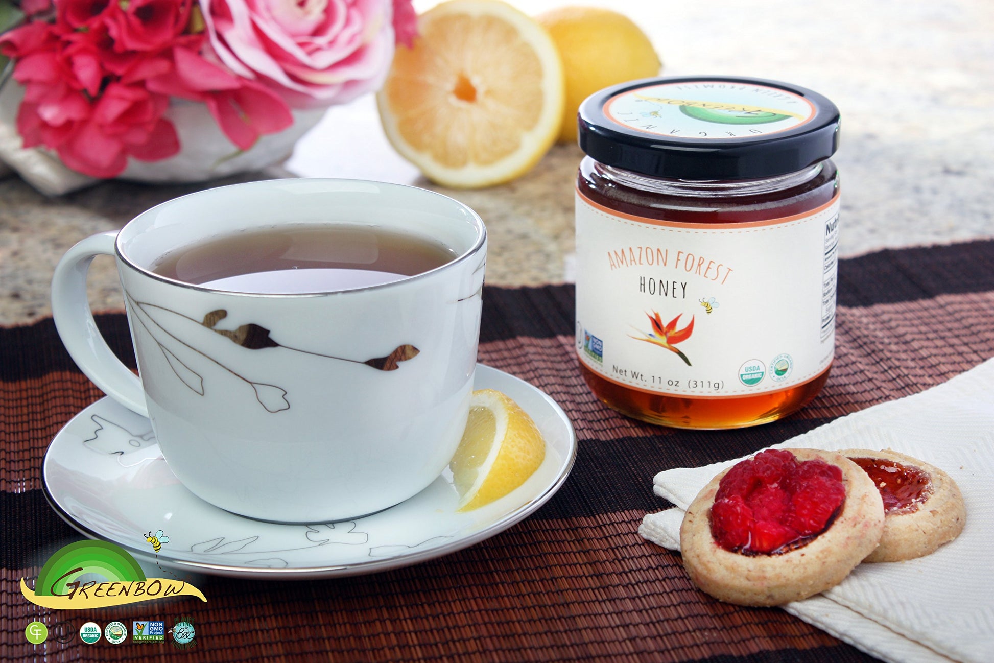- Q: How does the flavor of GREENBOW Organic Amazon Forest Honey compare to regular honey? A: GREENBOW Organic Amazon Forest Honey has a unique flavor profile due to its sourcing from the Amazon rainforest, often described as rich and floral compared to standard honey varieties.