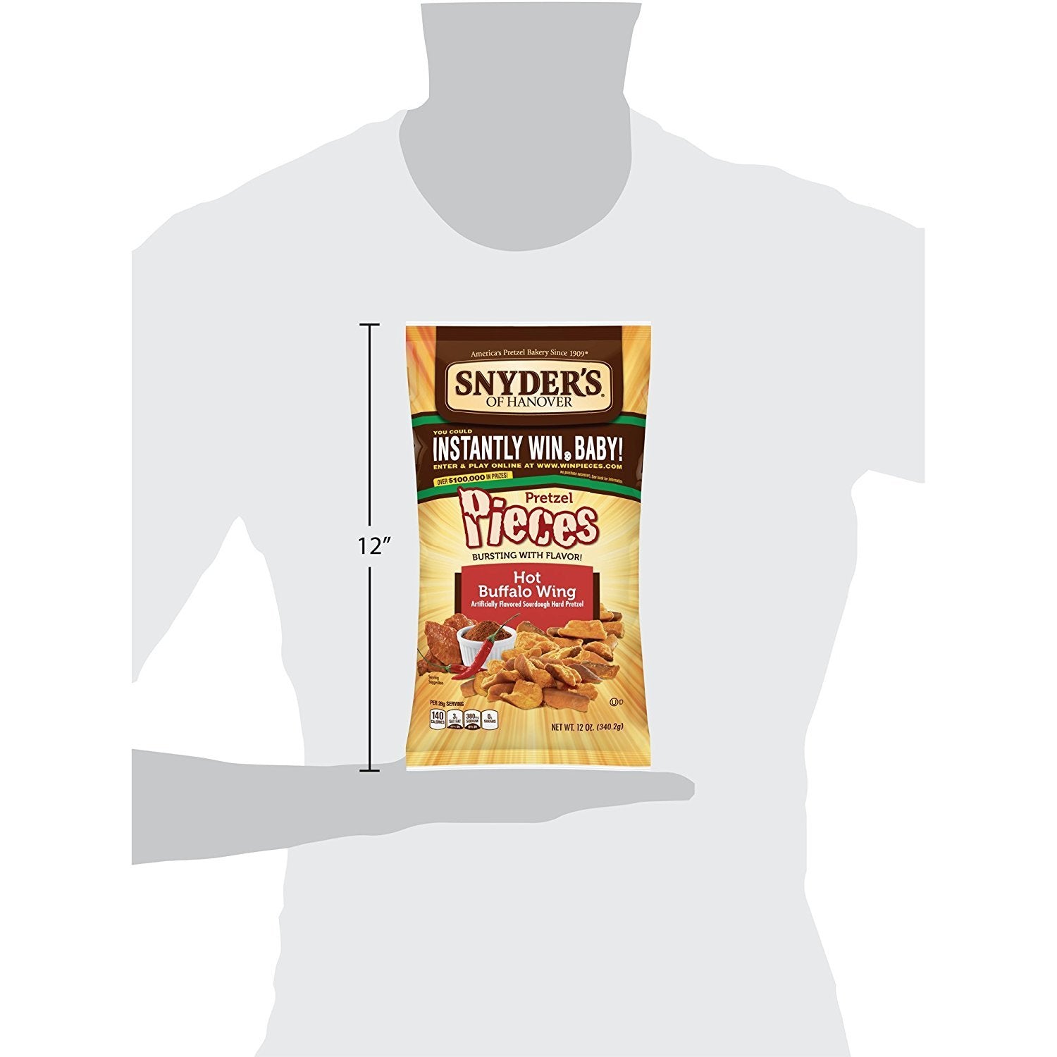 - Q: What makes Snyder's Of Hanover Hot Buffalo Wings Pretzel Pieces unique? A: Snyder's Of Hanover Hot Buffalo Wings Pretzel Pieces are unique due to their bold flavor profile that combines the spicy taste of buffalo wings with the satisfying crunch of traditional pretzels. Made from wholesome ingredients and baked to perfection, they offer a delicious snacking experience that stands out from regular pretzels.