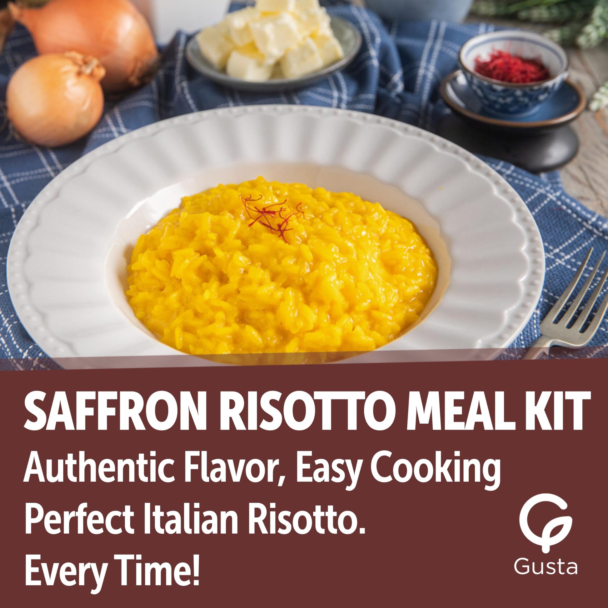 - Q: What ingredients are included in the Gusta Risotto alla Milanese Meal Kit? A: The Gusta Risotto alla Milanese Meal Kit includes five hundred grams of high-quality Carnaroli rice, a savory vegetable broth, and premium saffron. These ingredients are selected to ensure an authentic Italian cooking experience.