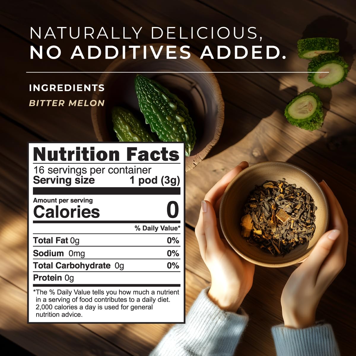 Q: How should I prepare the Bitter Melon Herbal Tea pods?A: To prepare the Bitter Melon Herbal Tea pods, simply insert a pod into your brewer, hit the 'brew' button, and enjoy a flavorful cup of tea in no time. Detailed brewing instructions are included on the packaging for your convenience.