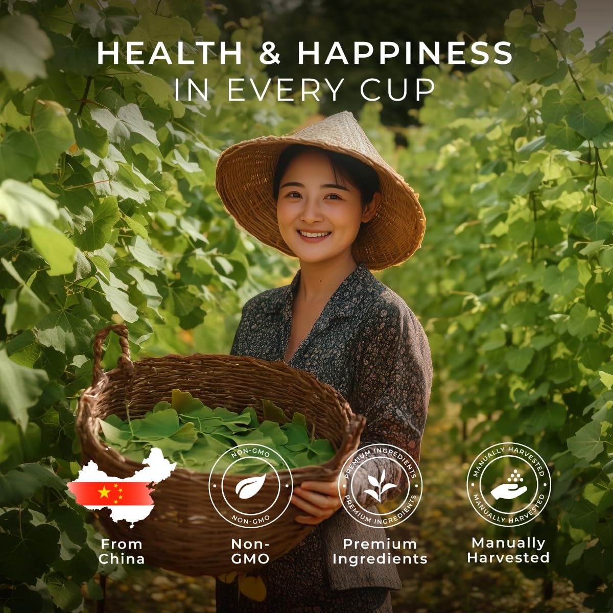 Q: What health benefits are associated with Ginkgo Biloba and Ginseng herbal tea?A: This herbal tea is often associated with potential health benefits such as improved memory retention, enhanced energy levels, and better digestive function, making it a great addition to a wellness routine.