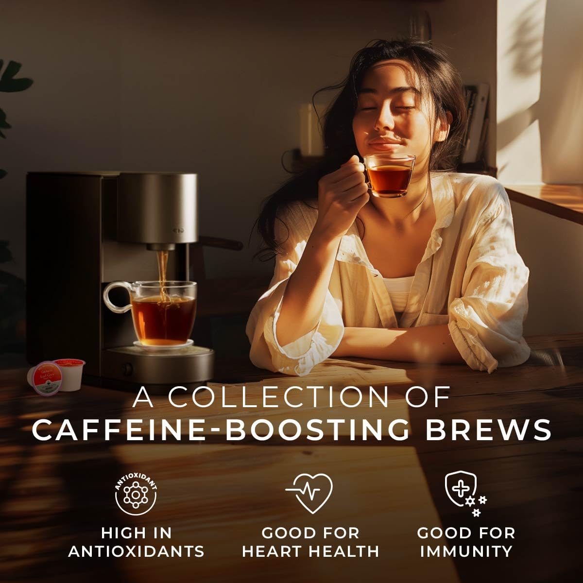 Wake up fresh and energized with our Morning Start Tea Collection. Each tea pod is a natural blend of pure ingredients sourced from plantations around the around. We have also ensured that our tea are free from artificial flavors, color and additives. Our 16 tea in this hot tea variety pack feature 4 flavors of caffeinated tea gifts blends that provide a rich and revitalizing start to your day. Packed in moisture-proof packaging, enjoy these fresh infusions of our Morning Start Tea Collection - invigorating brews that ensure you kick off your day on a high note.