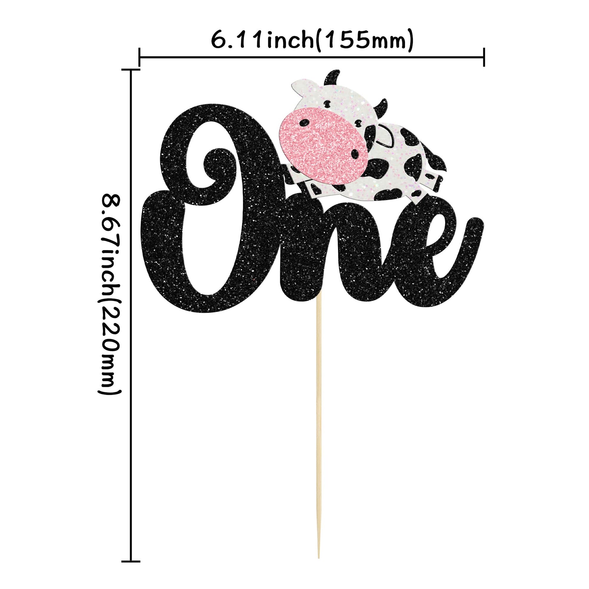 Q: What is the size of the Gyufise Cow One Cake Topper?A: The Gyufise Cow One Cake Topper measures approximately W 6.1 inches by H 8.7 inches (W 15.5 cm by H 22 cm), including the stick, making it a perfect fit for most cakes.