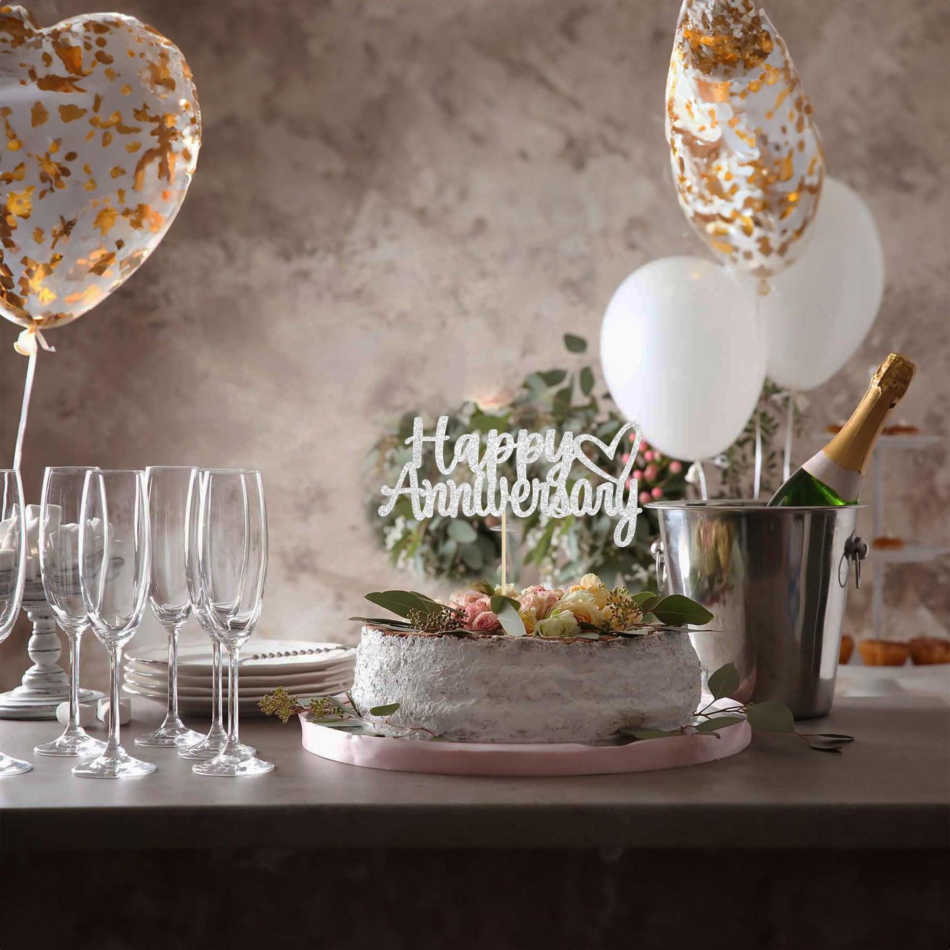 Q: Can I use this cake topper for other desserts besides cake?A: Absolutely! This Silver Happy Anniversary Cake Topper is versatile and can be used for decorating cupcakes, ice cream, fruits, cookies, and other desserts, making it a great addition to any celebration.
