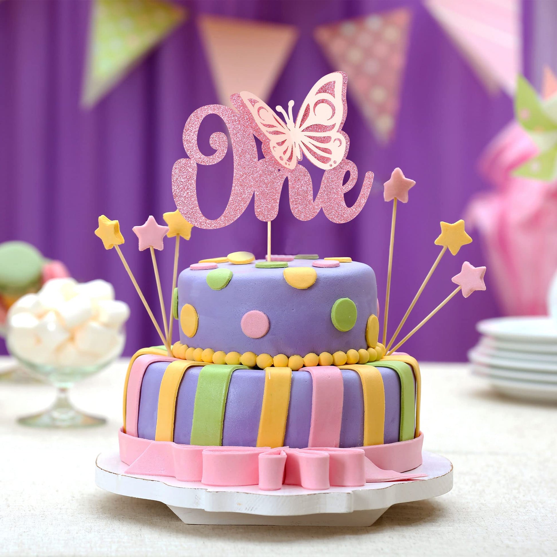 Q: Can this cake topper be used for other occasions besides a birthday?A: Yes, this Butterfly Cake Topper is versatile and can be used for various events such as bridal showers, baby showers, spring theme parties, wedding anniversaries, and any butterfly-themed celebrations.
