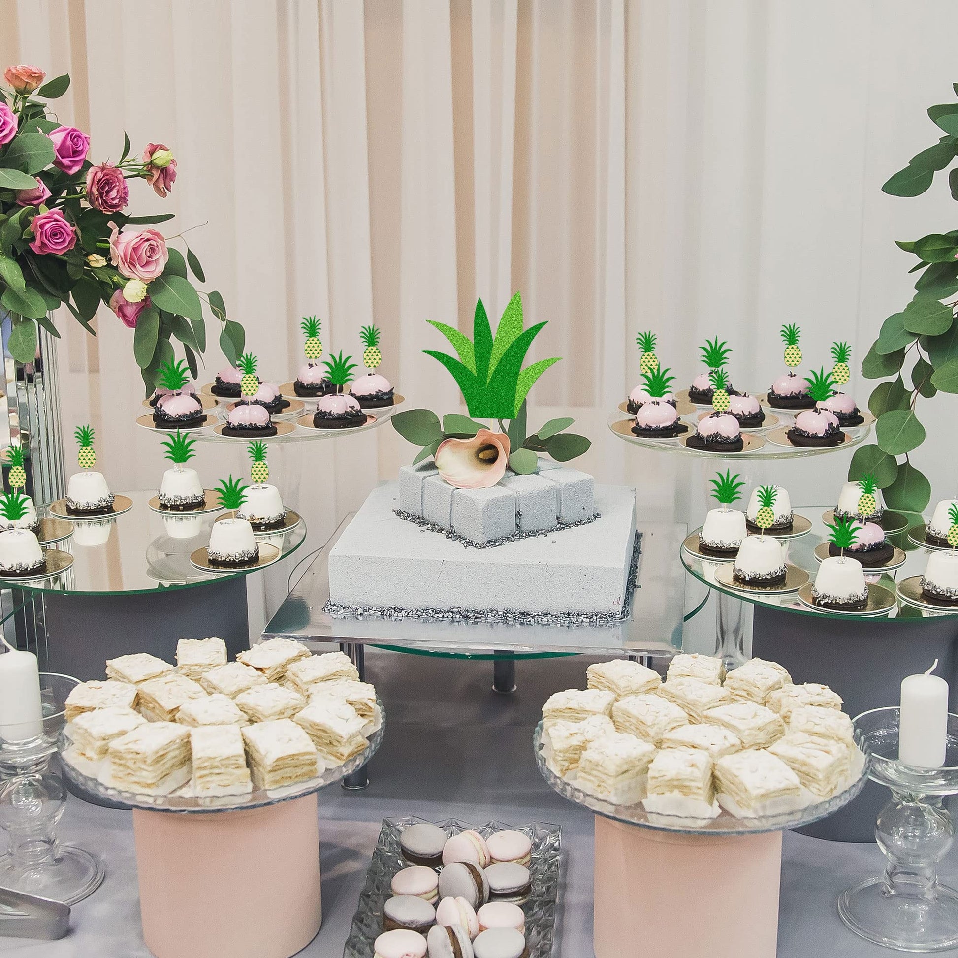 Q: Is the material of the pineapple cake toppers safe for food?A: Yes, the pineapple cake toppers are made of high-quality 300 gram glitter card stock and food-grade toothpicks, making them safe for use on cakes, cupcakes, and various desserts.