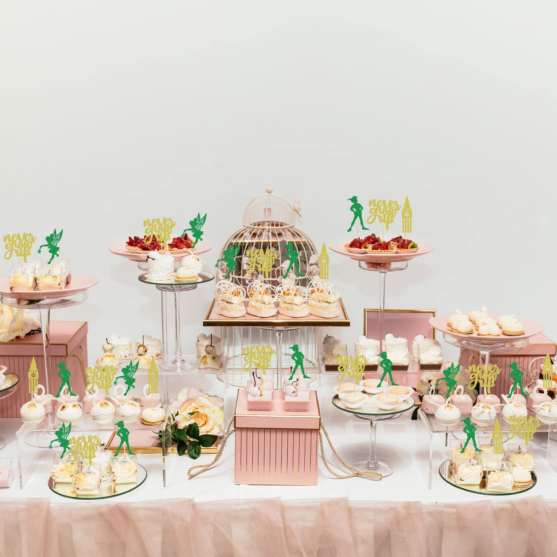 Q: Are these cupcake toppers suitable for a baby shower or birthday party?A: Yes, these cupcake toppers are perfect for both baby showers and birthday parties, especially for a Neverland theme or a 'Never Grow Up' theme, making them a versatile decoration choice.