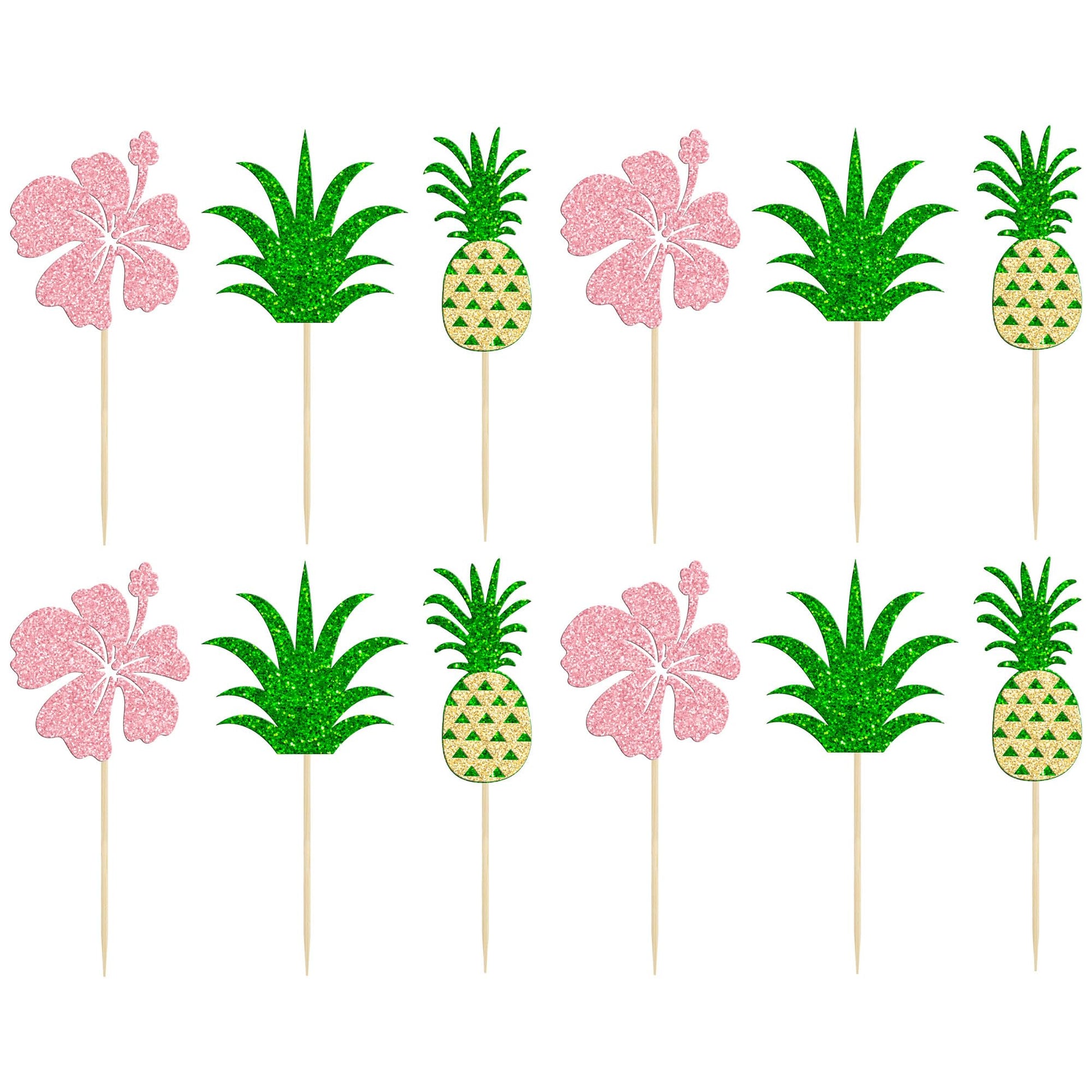 Q: What themes are these cupcake toppers suitable for?A: These cupcake toppers are ideal for various tropical themes, including Hawaiian luau parties, summer celebrations, baby showers, and birthday parties for kids, adding a fun and festive touch to your event.