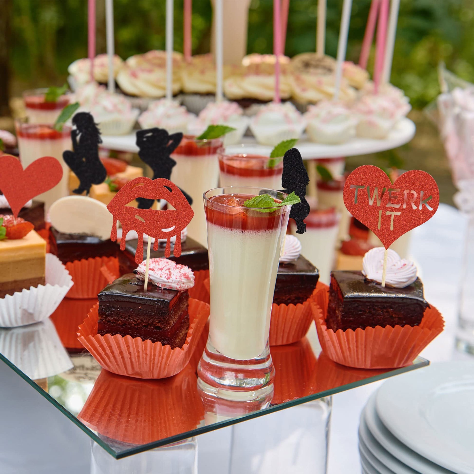 Q: What occasions are these cupcake toppers suitable for?A: These cupcake toppers are perfect for Valentine’s Day parties, bachelorette theme parties, Galentine's celebrations, and birthday cake decorations.