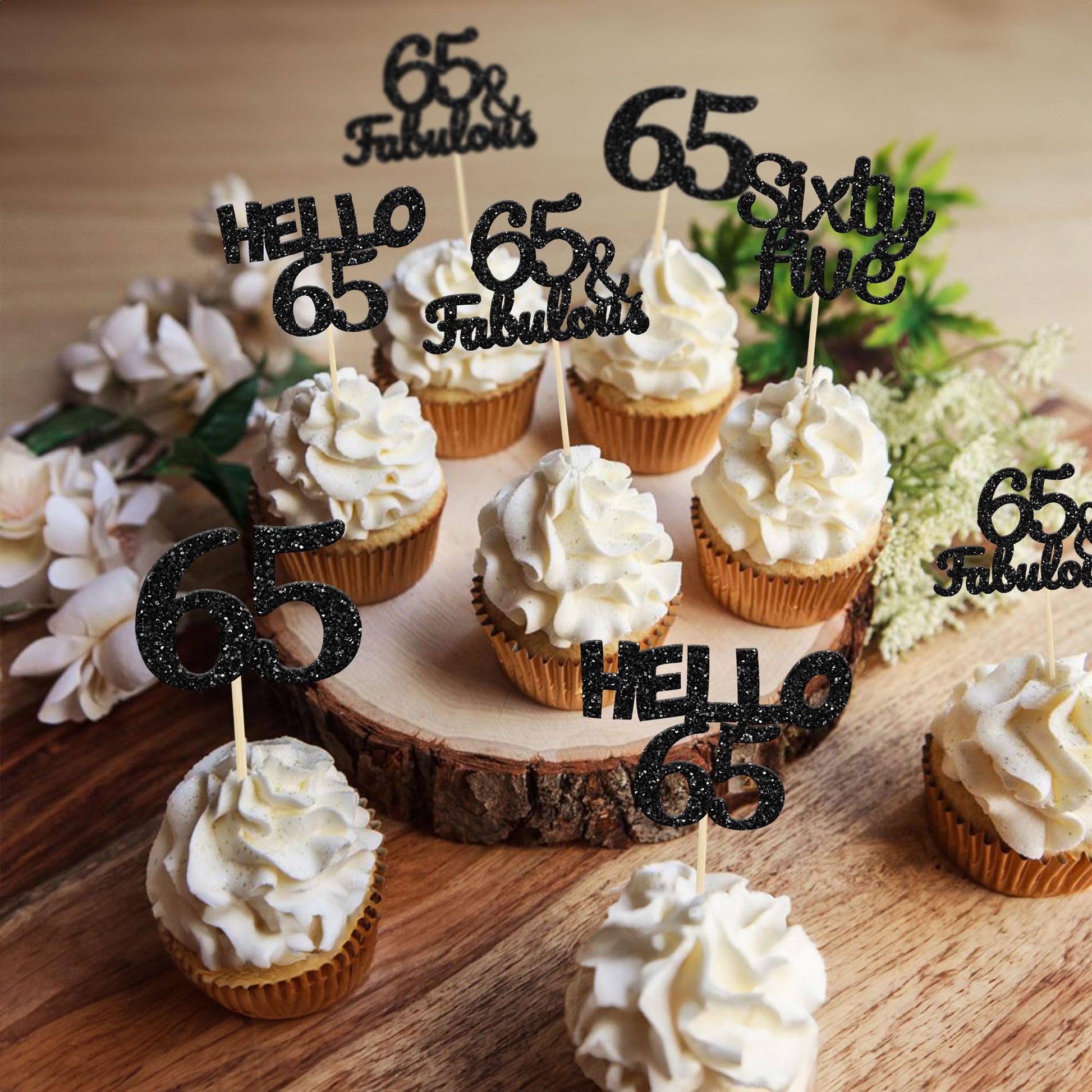 Q: How many cupcake toppers are included in the package?A: The package includes 24 pieces of black glitter 65 cupcake toppers, making it perfect for decorating multiple cupcakes for your celebration.