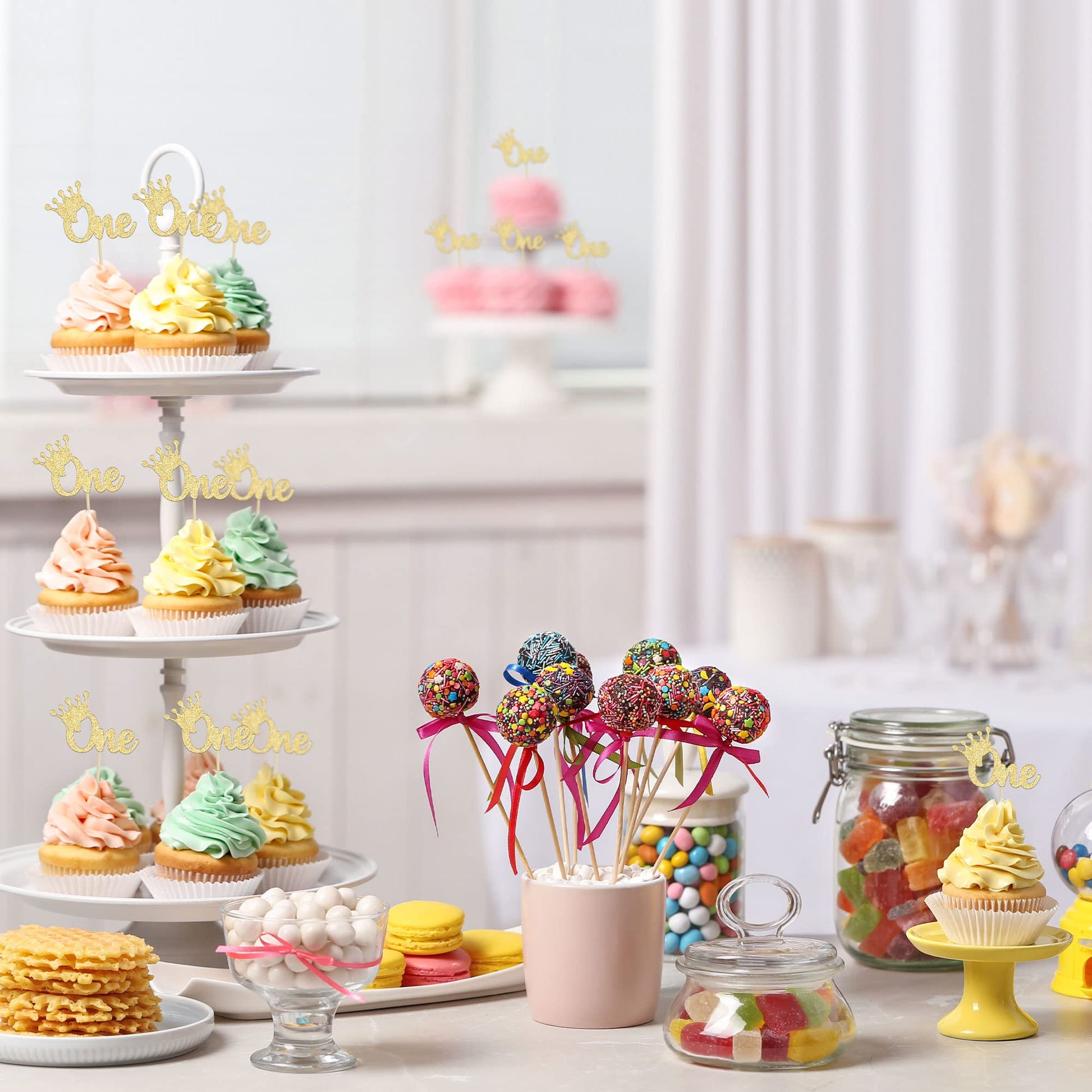 Q: Are the Gyufise Crown Cupcake Toppers suitable for themed parties?A: Absolutely! These toppers are perfect for king prince theme first birthdays, baby showers, and other similar celebrations, adding a fun and attractive touch to your desserts.