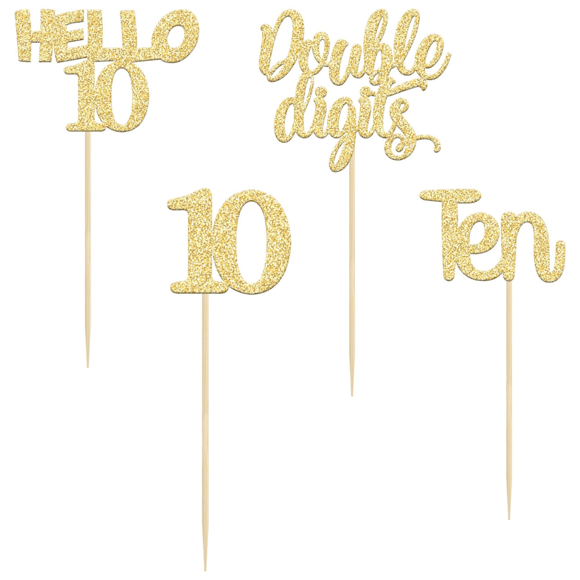 Q: What occasions are suitable for using these cupcake toppers?A: These cupcake toppers are perfect for 10th birthday parties, 10th anniversary celebrations, or any double digits birthday theme party, adding a fun and attractive element to your desserts.