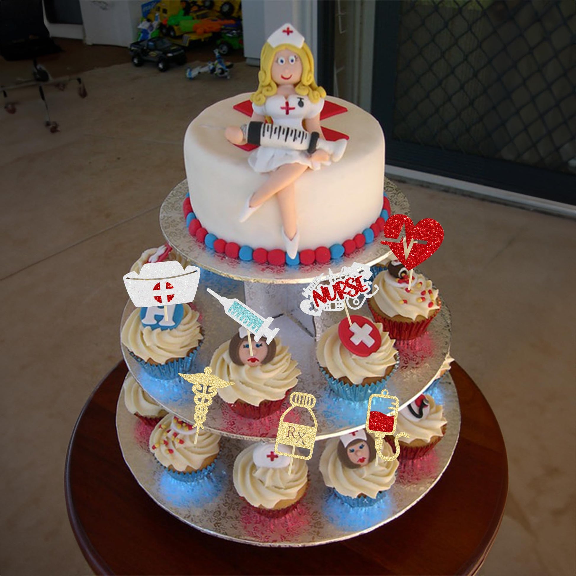 Q: What themes are suitable for these cupcake toppers?A: These nurse-themed cupcake toppers are perfect for various occasions, including nurse-themed parties, nursing school graduations, medical RN theme parties, and birthday celebrations.