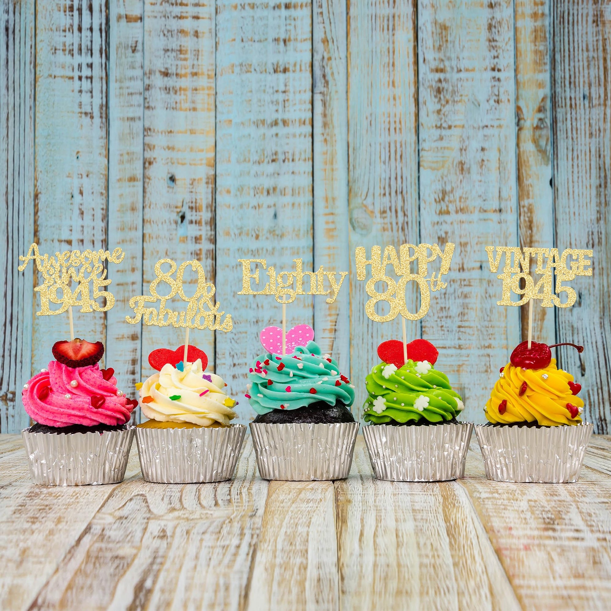 Q: What occasions are suitable for these cupcake toppers?A: These vintage-themed cupcake toppers are ideal for 80th birthday parties, 80th wedding anniversaries, and other similar themed celebrations, adding a fun and decorative touch to your desserts.