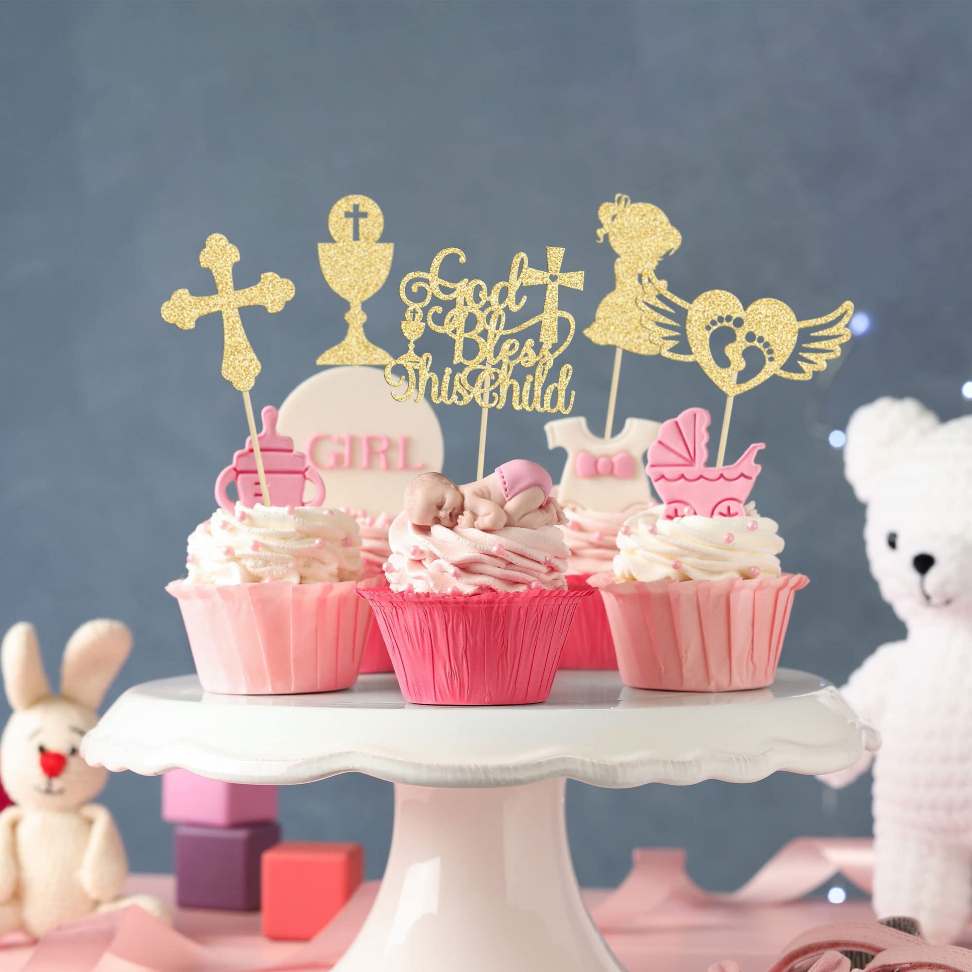 Q: Can I use these cupcake toppers for a baptism-themed party?A: Absolutely! These cupcake toppers are designed specifically for baptism-themed parties and similar celebrations, adding a special touch to your cake decorations.