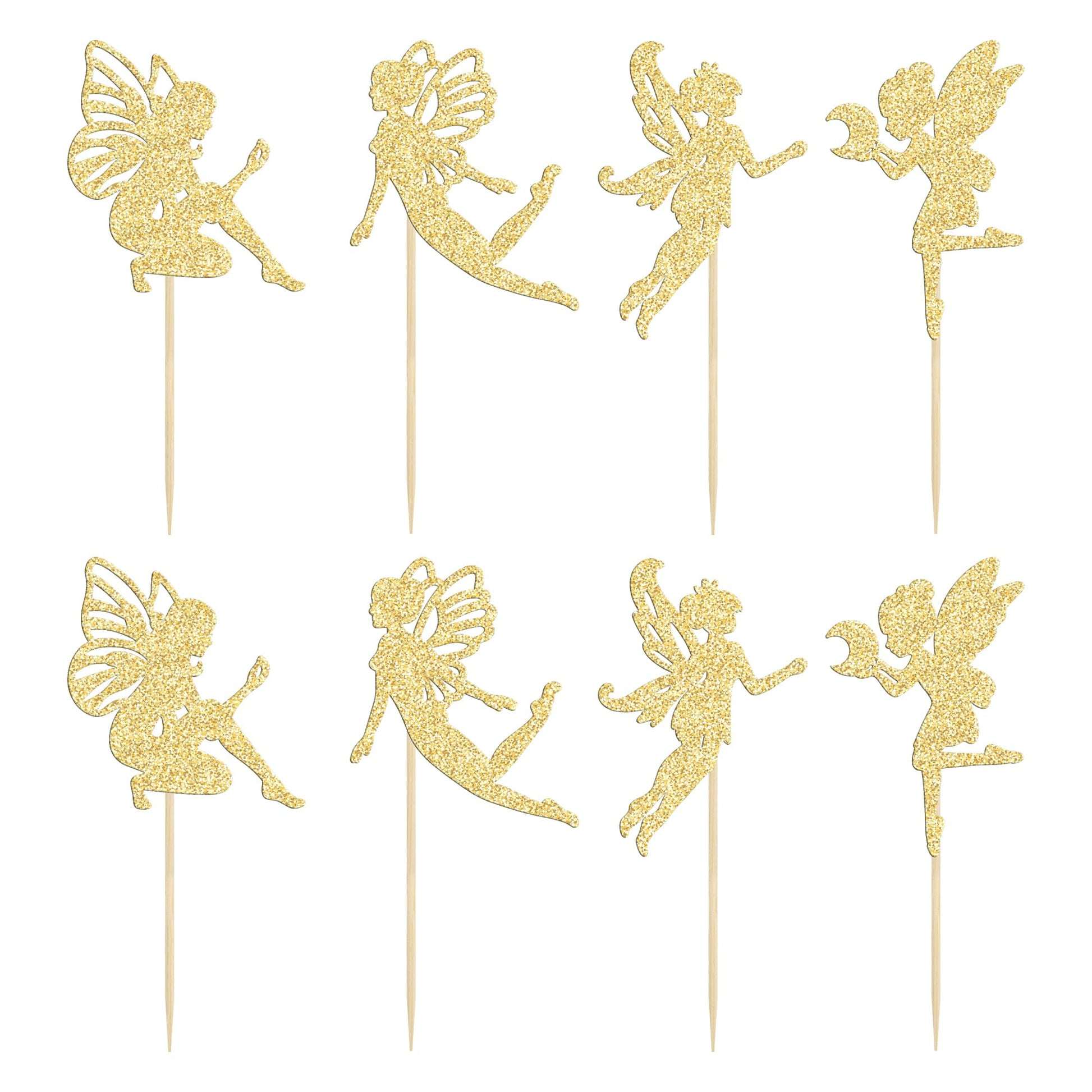 Gyufise 36Pcs Fairy Cupcake Toppers Gold Glitter Flower Angel Fairy Cupcake Picks Ballet Dancer Cupcake Topper For Wedding Brida
