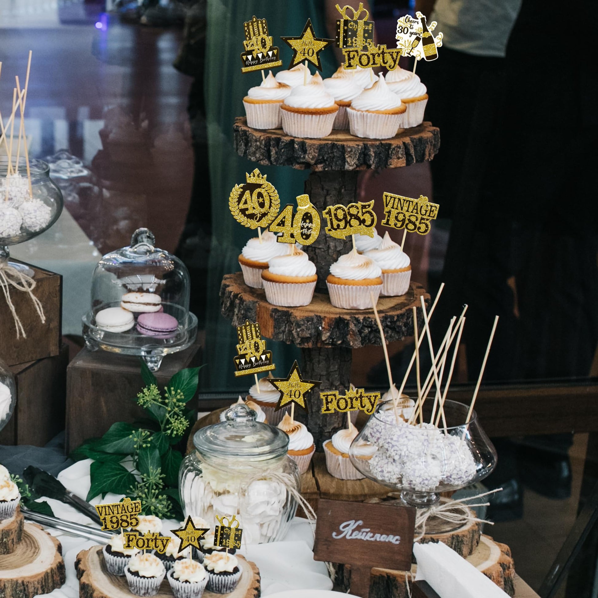 Q: Can I use these toppers for a 1985 vintage-themed party?A: Absolutely! These cupcake toppers are designed to complement a vintage 1985 theme and are perfect for celebrating 40th birthday parties, making them a great addition to your party decorations.