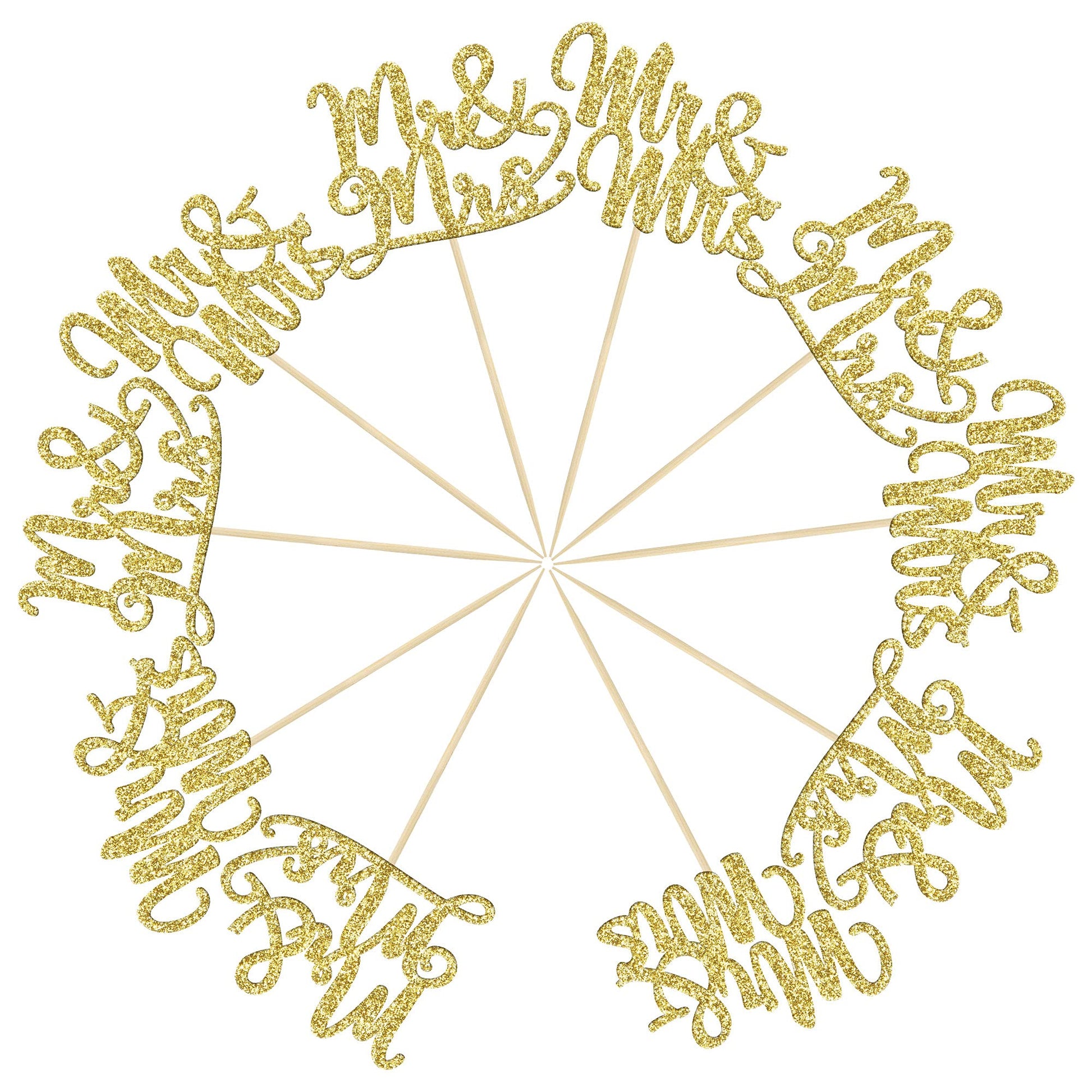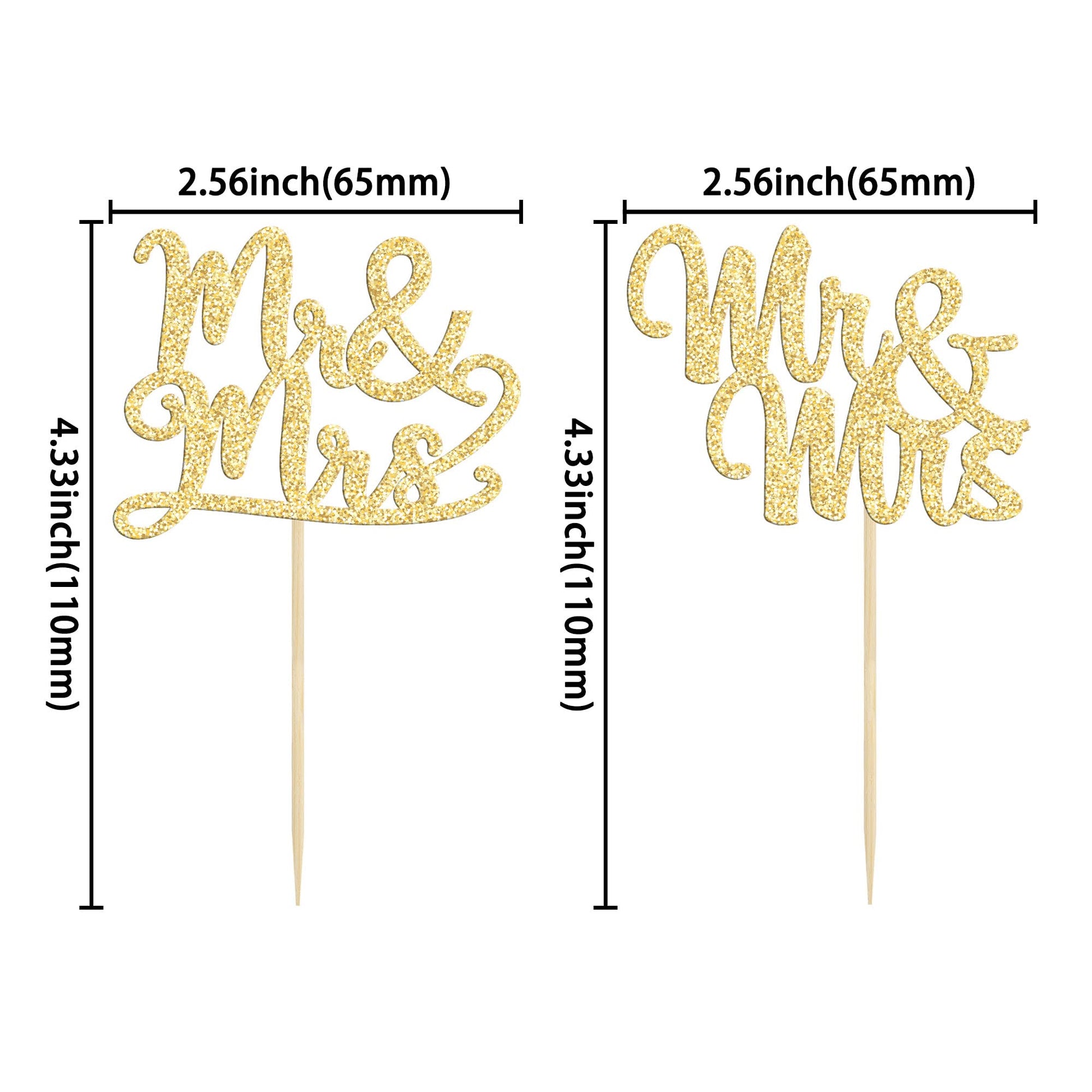Q: What occasions are these cupcake toppers suitable for?A: These gold glitter Mr & Mrs Cupcake Toppers are ideal for various celebrations, including bridal showers, wedding anniversaries, and any Mr & Mrs themed parties, adding a creative touch to your desserts.