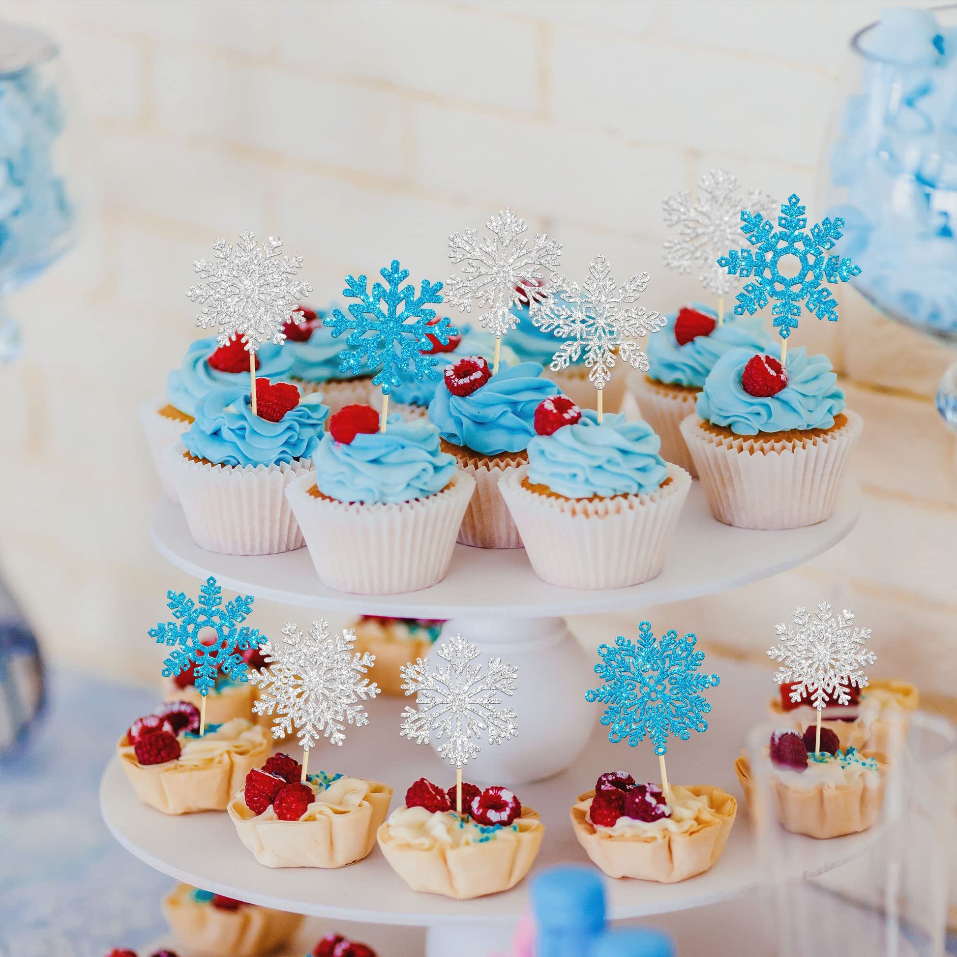 Q: Are the cupcake toppers safe to use on food?A: Yes, the Gyufise Snowflake Cupcake Toppers are made from high-quality 300 gram card stock and food-grade toothpicks, ensuring they are safe for use on cakes, cupcakes, ice cream, fruits, and other food items.